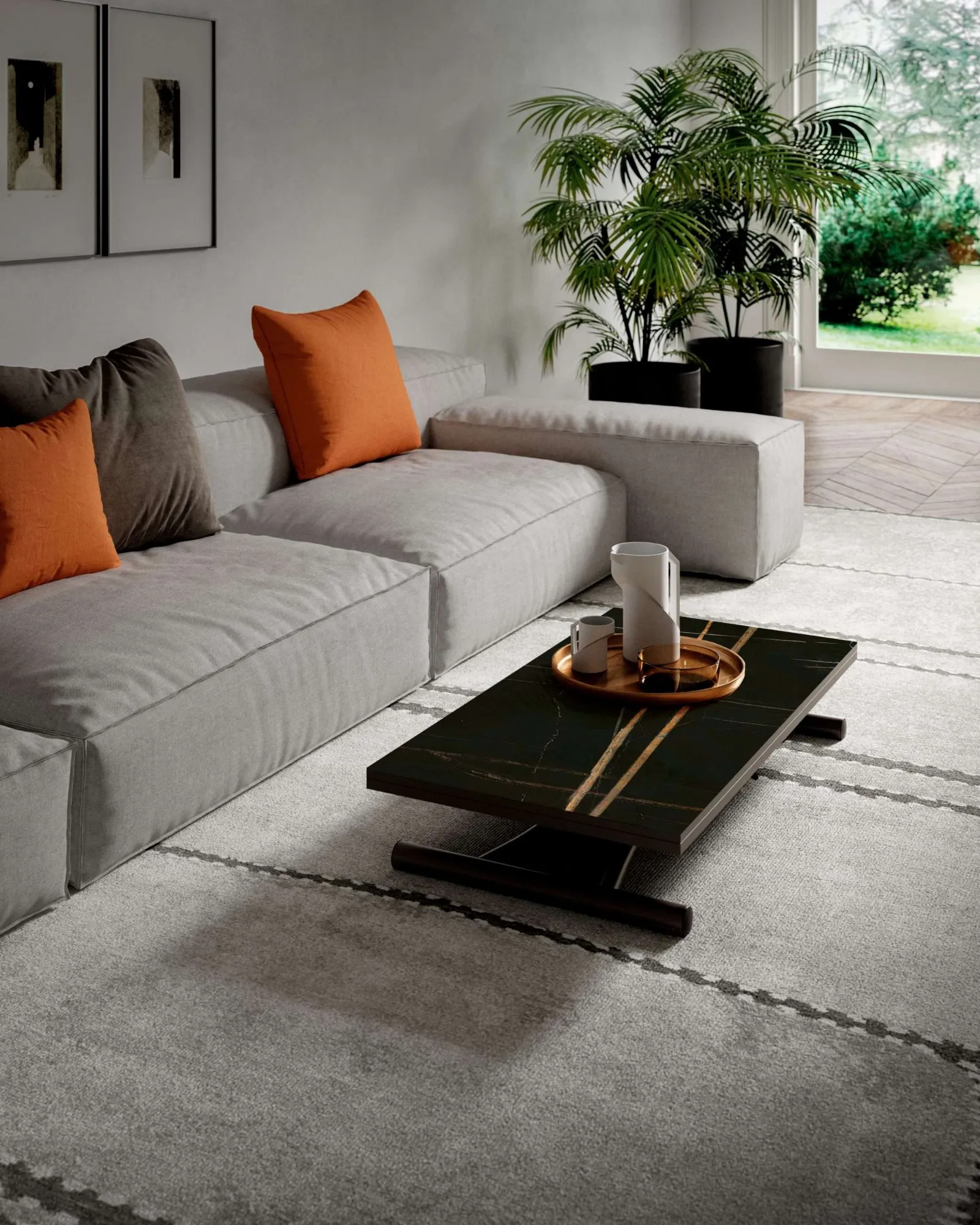 Tavolino trasformabile in tavolo da pranzo Mondial CR di Ozzio: clicca e scopri di più sui Complementi e tavolini moderni in vetro del noto e rinomato brand!