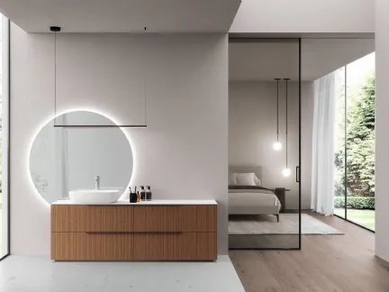 mobili bagno a terra in laccato opaco della marca Baxar: clicca e scopri l'arredo bagno moderno M1 System 132 per la stanza del benessere.