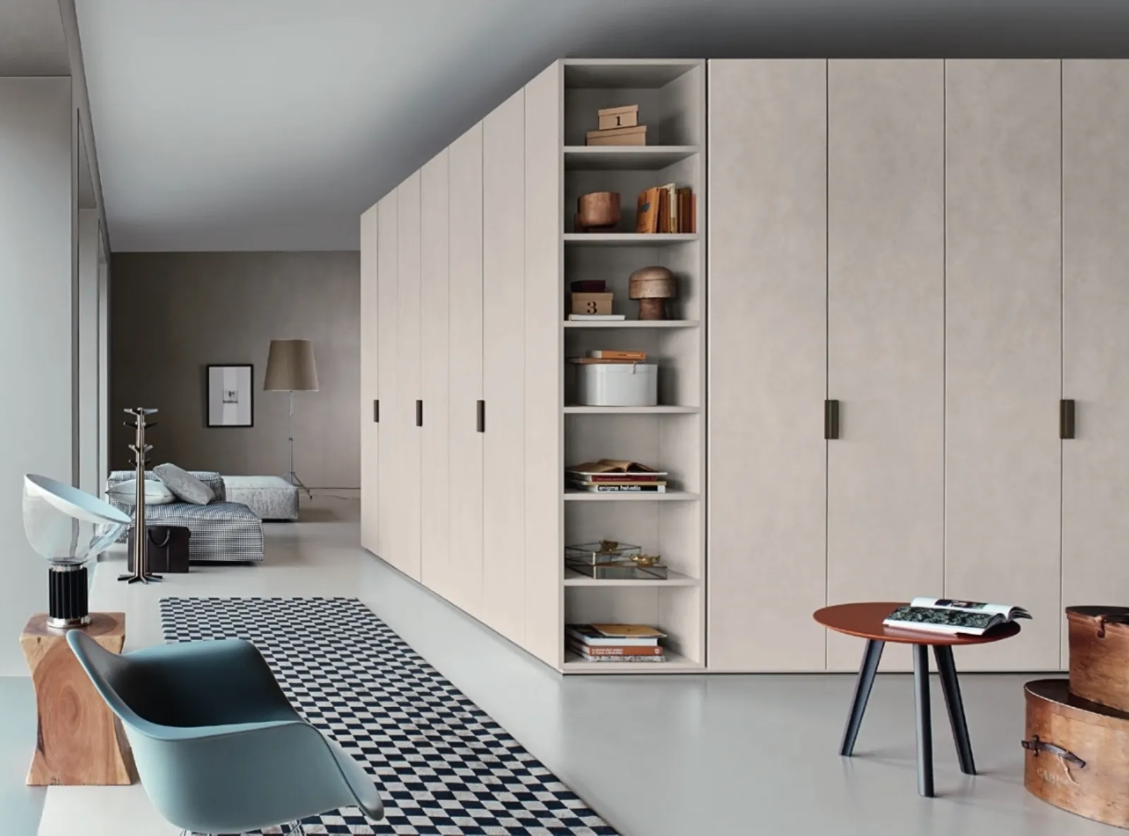Cerchi un guardaroba in materico? Clicca e scopri armadiature ad angolo con ante battenti di Sangiacomo.