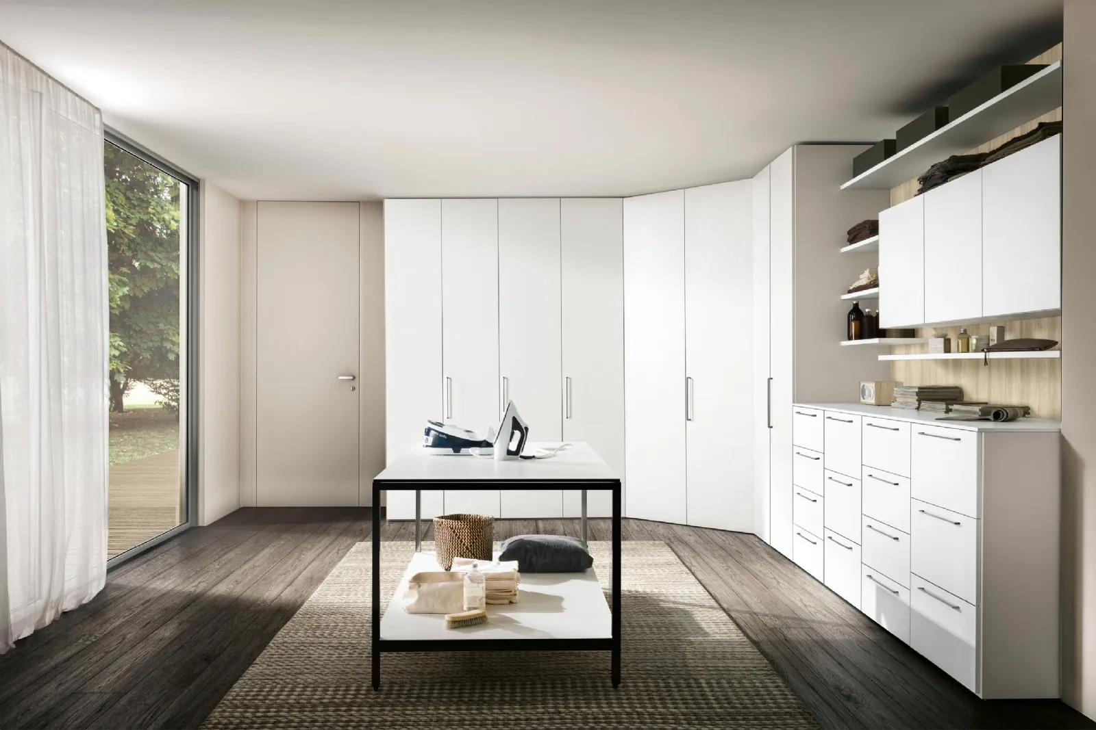 Se cerchi armadi ad angolo con ante battenti, clicca e scopri l'armadio Intermezzo ad angolo per Lavanderia di Adok in laccato opaco.