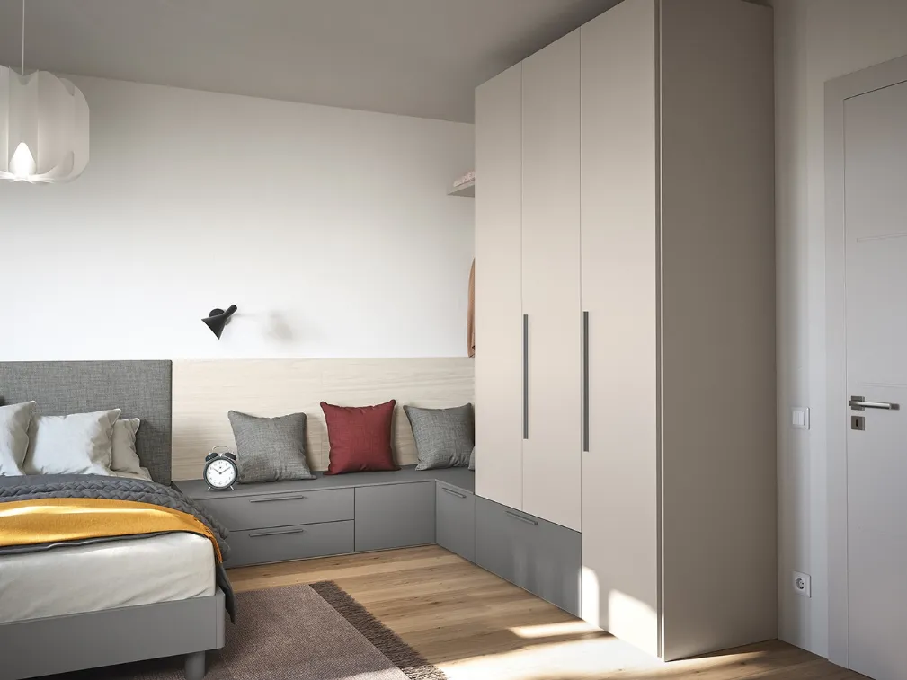 Eccoti l'armadio Armadio 08A in melaminico di Cinquanta3! Un ricco catalogo di armadi a muro con ante battenti.