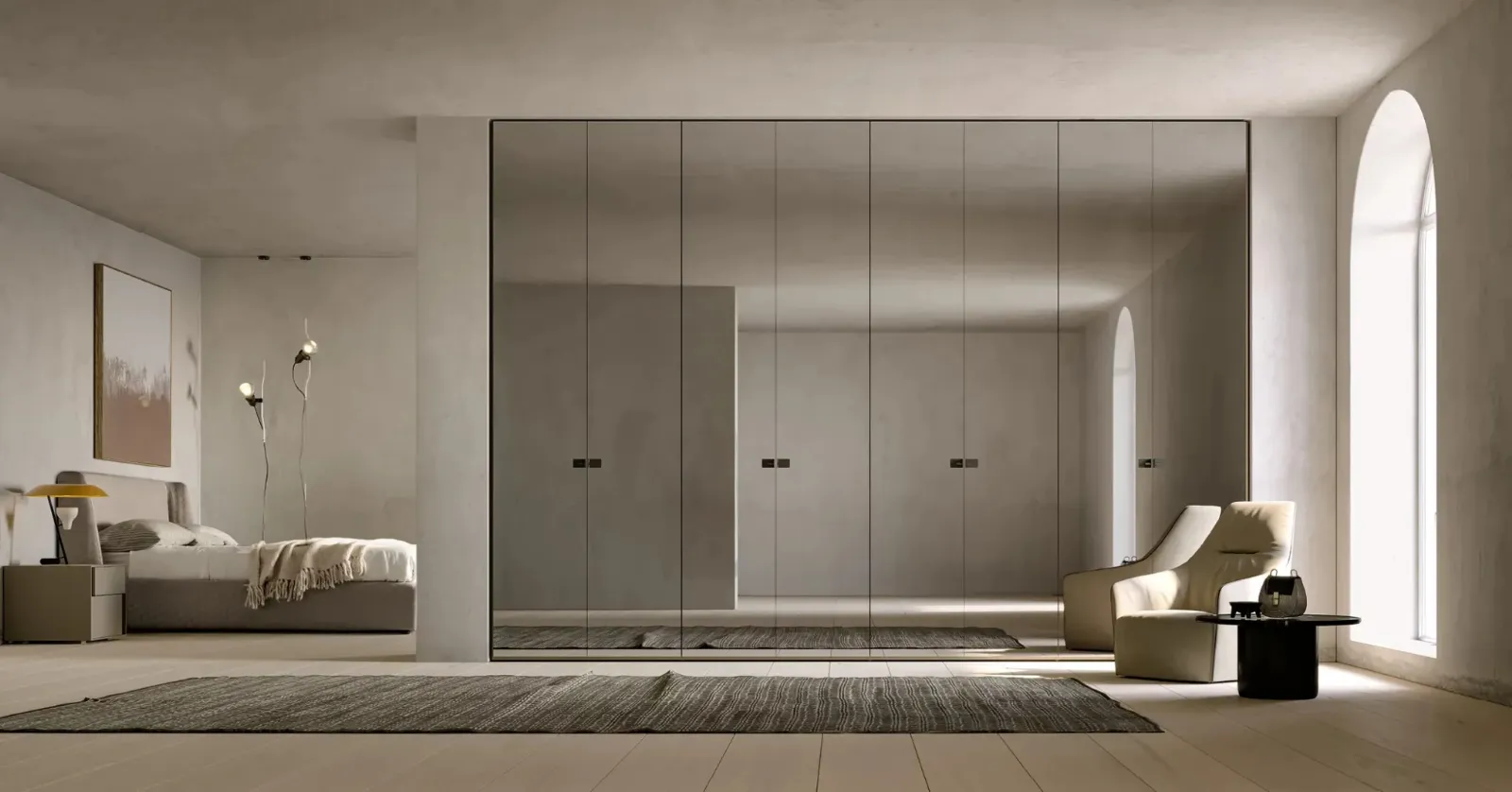 Se desideri una zona del riposo arredata con gusto, scegli l'armadio Atelier a specchio con ante battenti di Adok!