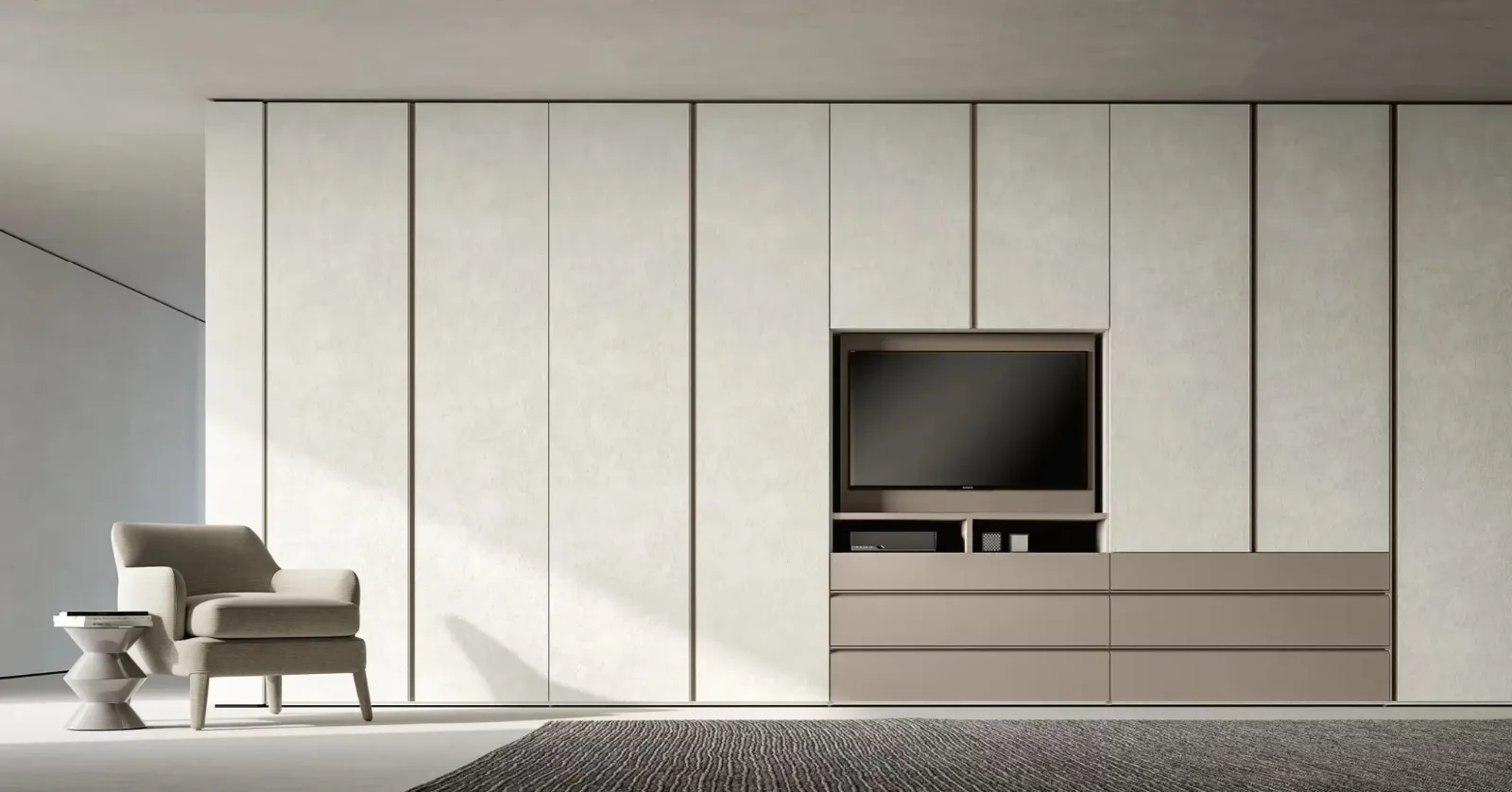 Cerchi un armadio Atelier con TV Adok? Clicca subito! Gli armadi a muro con ante battenti ti attendono.