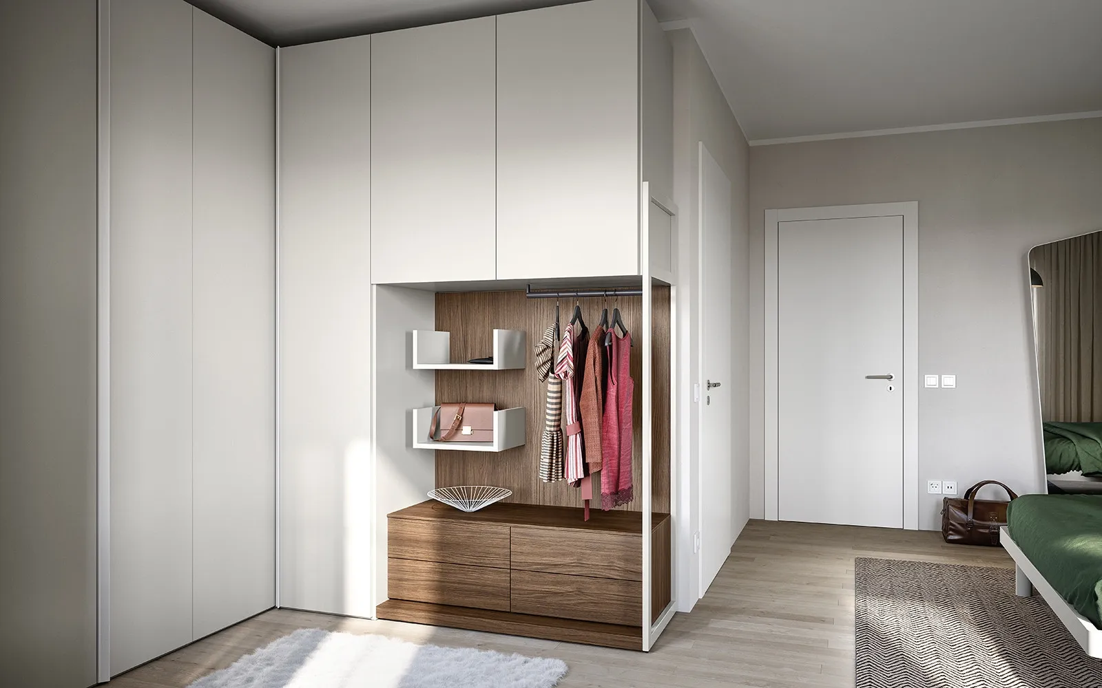 Armadio angolare con anta battente 09A di Cinquanta3: compila il form, contattaci e dai vita alla stanza del relax come l'hai sempre sognata. Contattaci per info e preventivi e potrai ultimare la zona del riposo che hai sempre voluto grazie ad una ampia gamma di mobili contenitori moderni come questo armadio in melaminico nella fotografia. La zona del riposo è dedicata al relax, deve dunque risultare arredata al meglio e completa di mobili ed elementi accessori capaci di ricreare un'atmosfera sempre rilassante. Per ultimare al meglio il concept d'arredo, opta per le nostre proposte di Arredamento Casa dei migliori brand, letti, armadi e comò vari per eleganza, grandezza e materiale. Gli Armadi e le cabine armadio con ante battenti devono arredare la camera assicurandoti una perfetta ottimizzazione degli spazi e un'esclusiva ricerca stilistica.