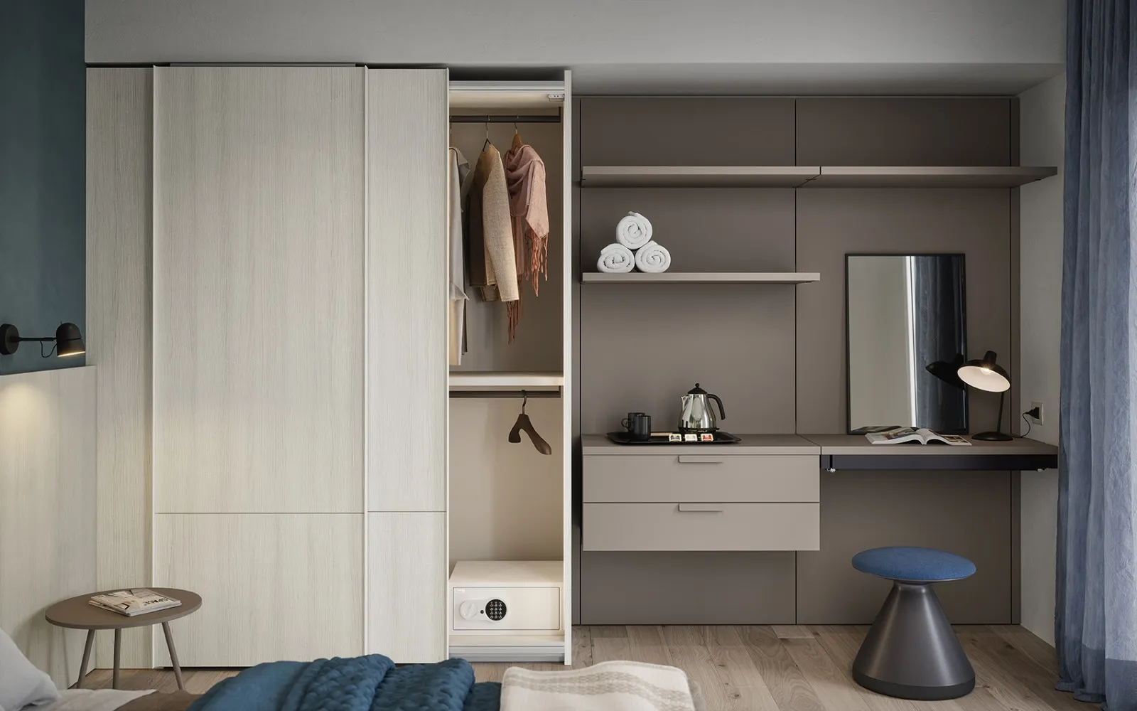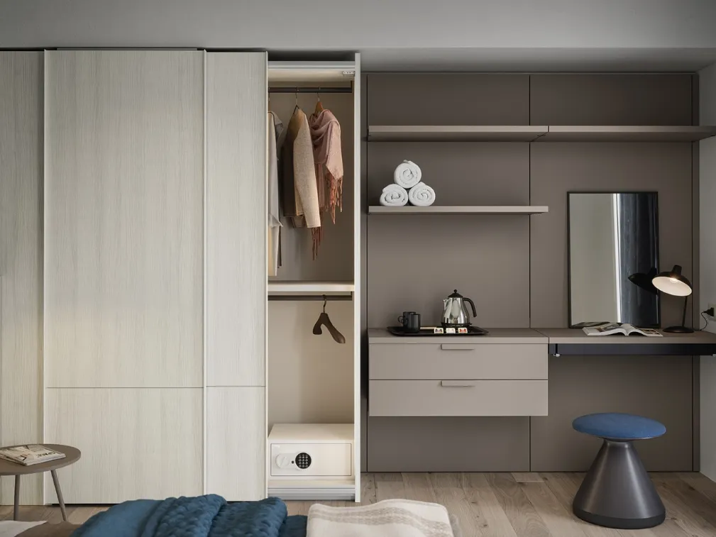 Eccoti l'armadio Armadio 11C in melaminico di Cinquanta3! Una ricca gamma di armadi a muro con ante scorrevoli.