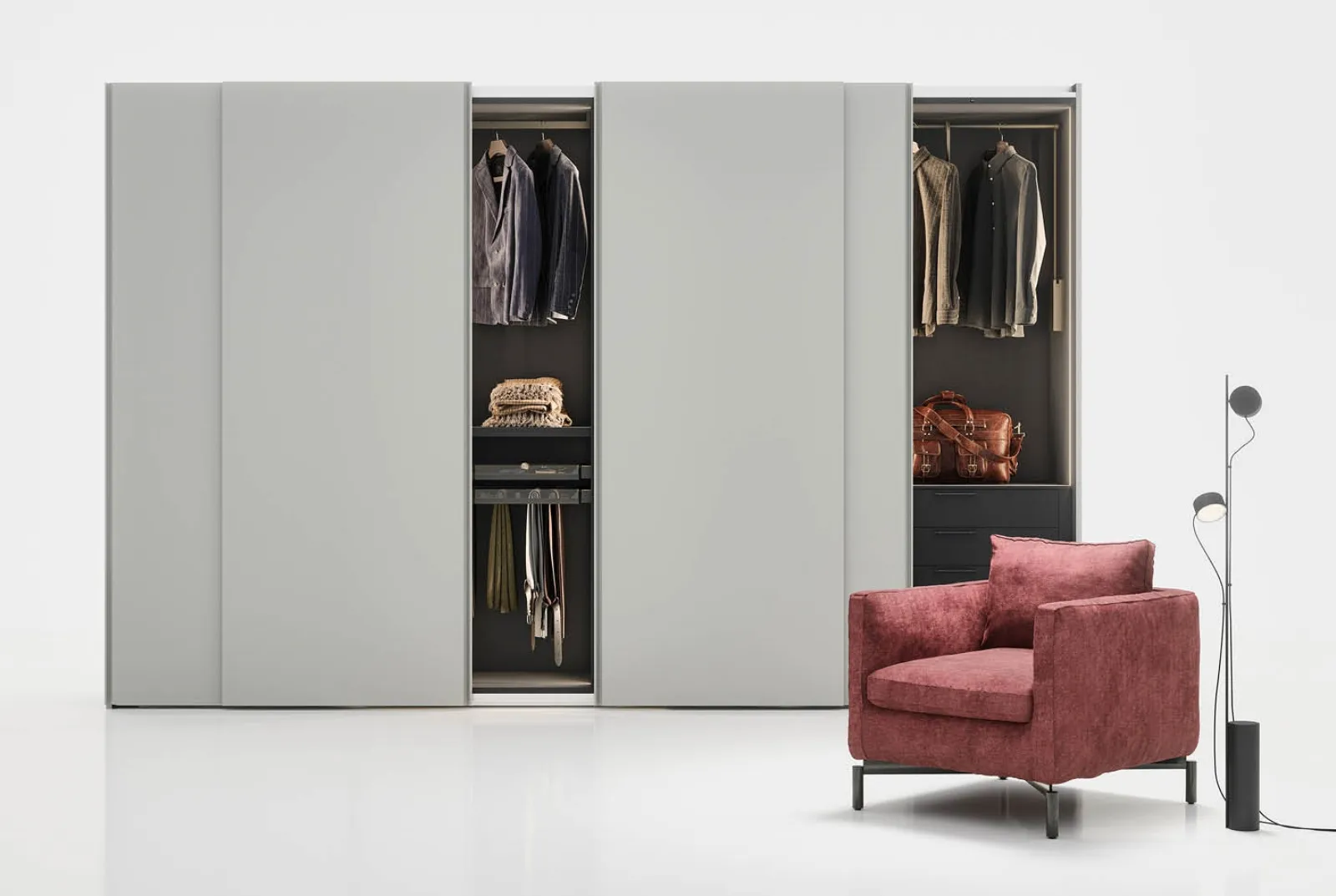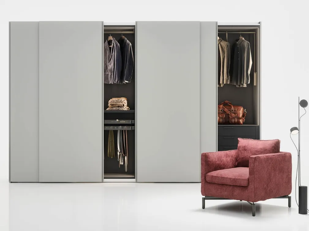 Se desideri armadiature a muro con ante scorrevoli, clicca e scopri l'armadio Gola scorrevole di Novamobili in laccato opaco.