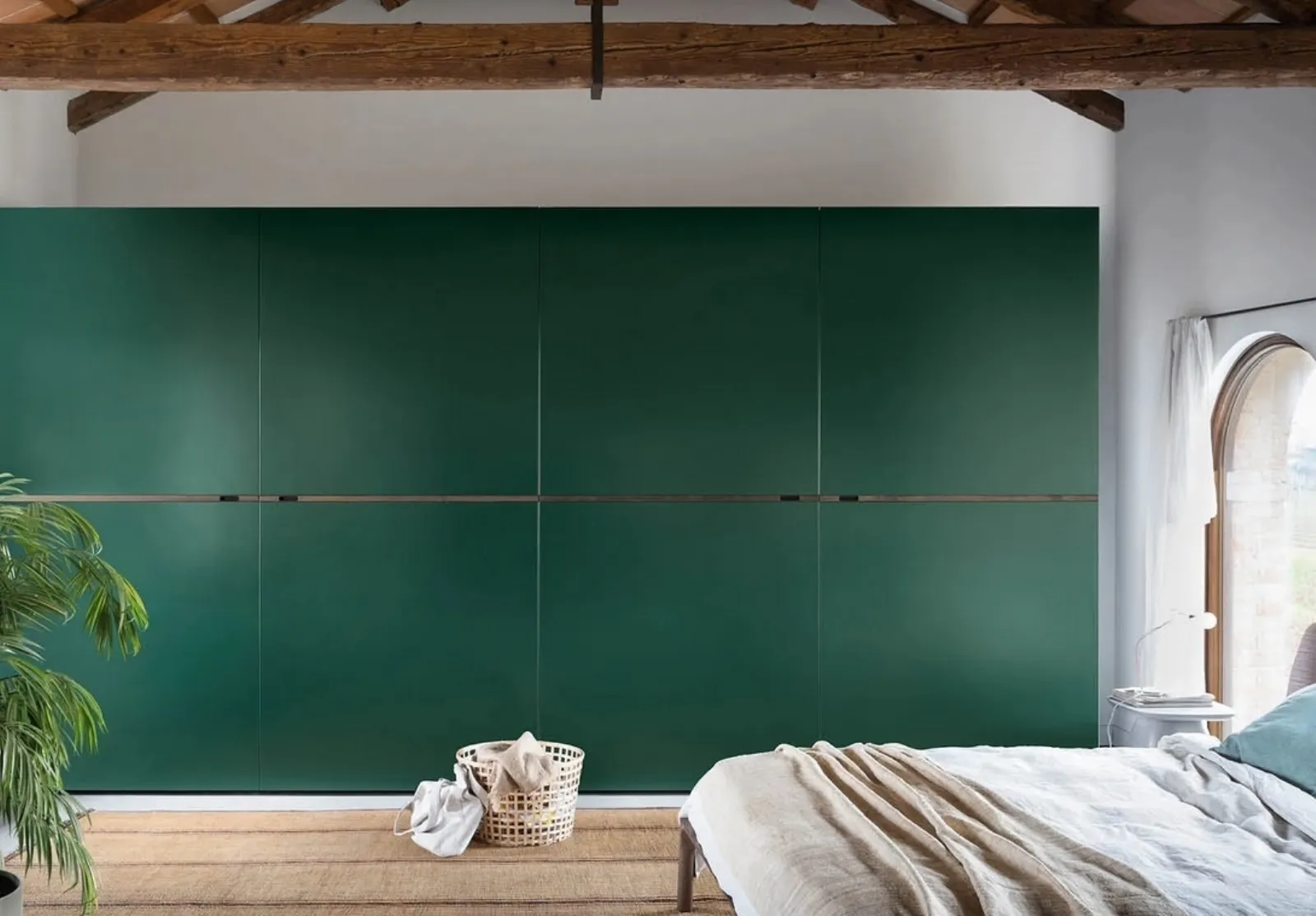 Eccoti l'armadio Middle complanare in laccato opaco di Novamobili! Una ricca gamma di armadi a muro con ante scorrevoli.