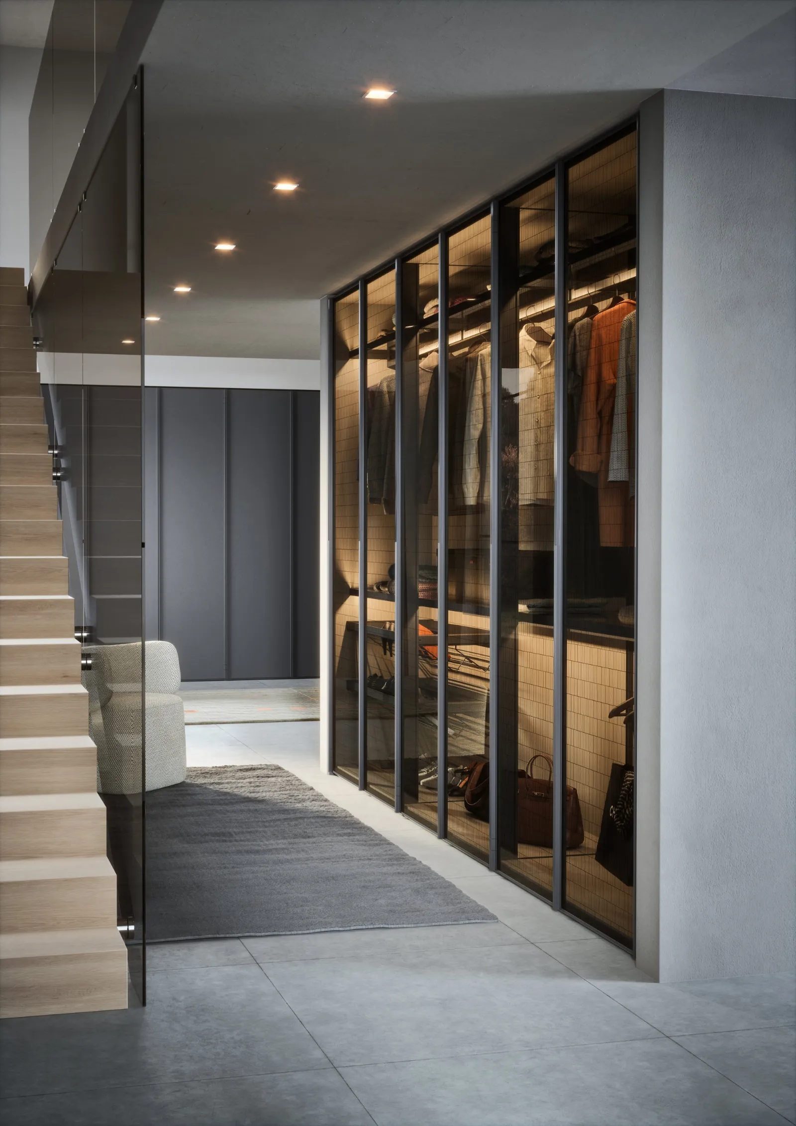 Se sei alla ricerca di armadi a muro con ante battenti, clicca e scopri l'armadio Perry Vetro di Novamobili in vetro.