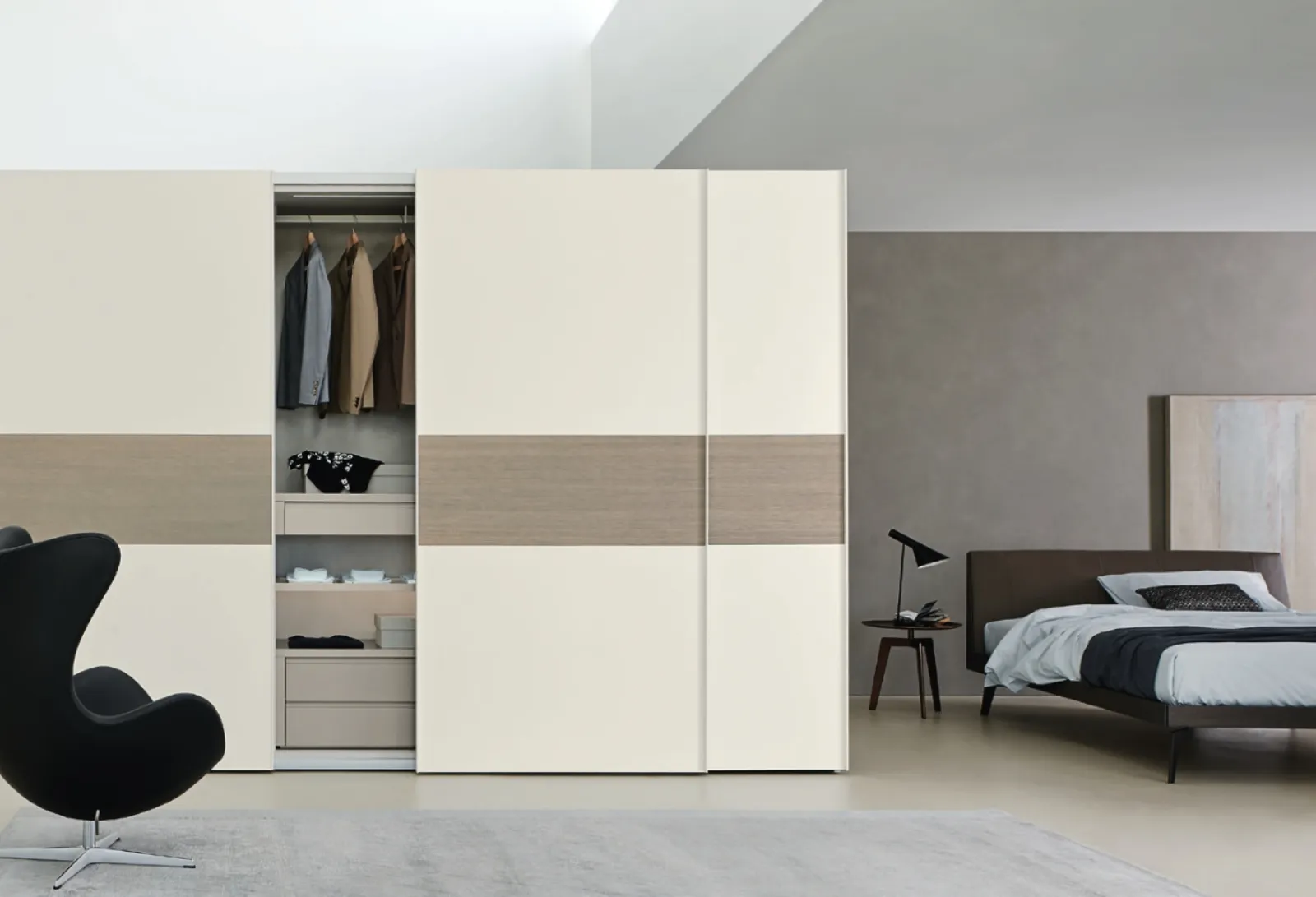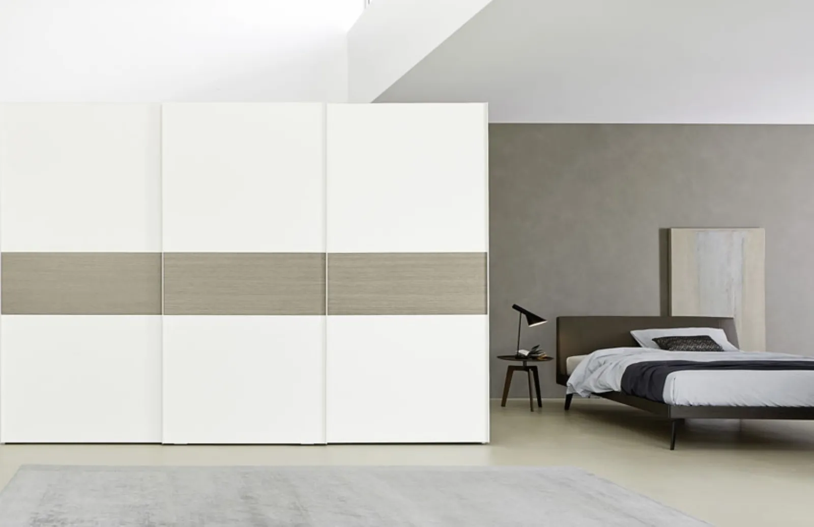 Eccoti l'armadio Polo in laccato opaco di Sangiacomo! Una ricca gamma di armadi a muro con ante scorrevoli.