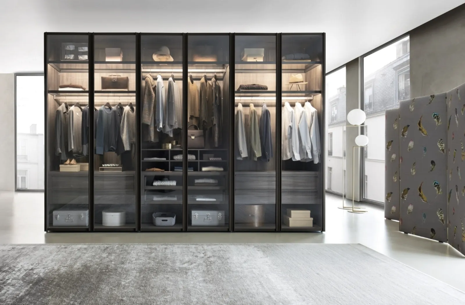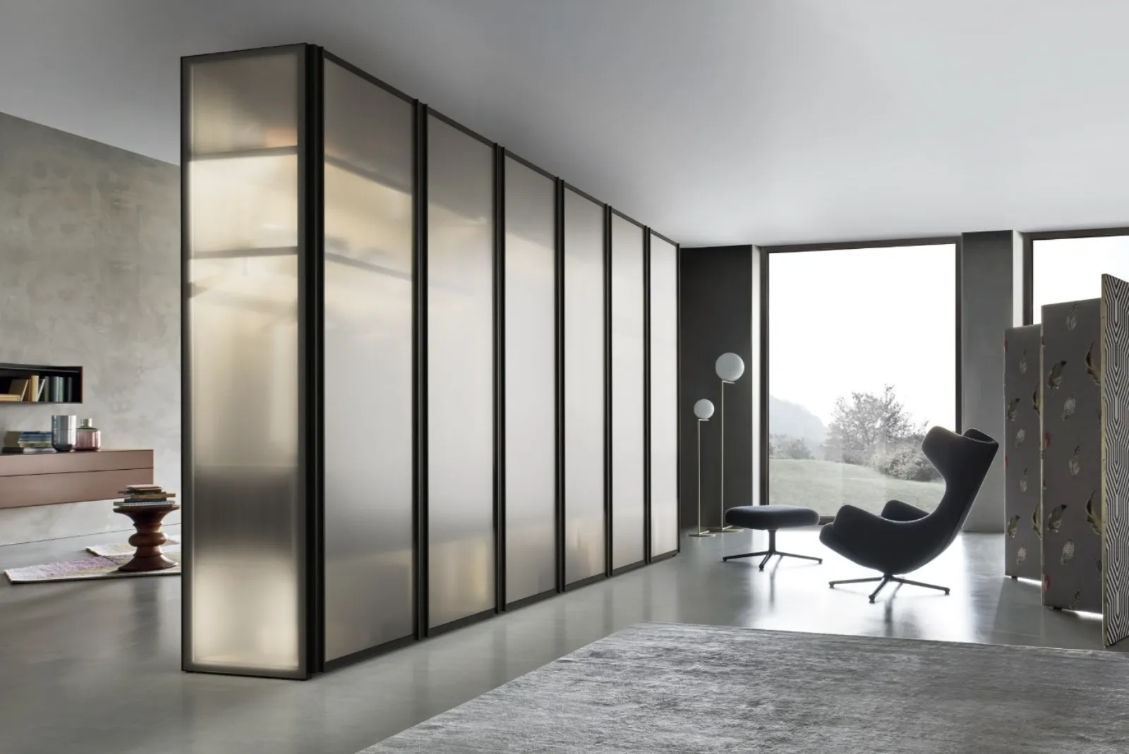 Gli Armadi componibili con ante battenti sono elementi essenziali in camera, per renderla ben arredata, pratica e completa di tutto. Armadio Scrigno di Sangiacomo: compila il form per ricevere info di ogni tipo e consigli per progettare la camera che hai sempre sognato. Contattaci e ottieni informazioni sulla nostra linea di Arredamento Casa: potrai completare la zona del riposo potendo usufruire di una ricca offerta di mobili contenitori design, come l'armadio in vetro nell'immagine.