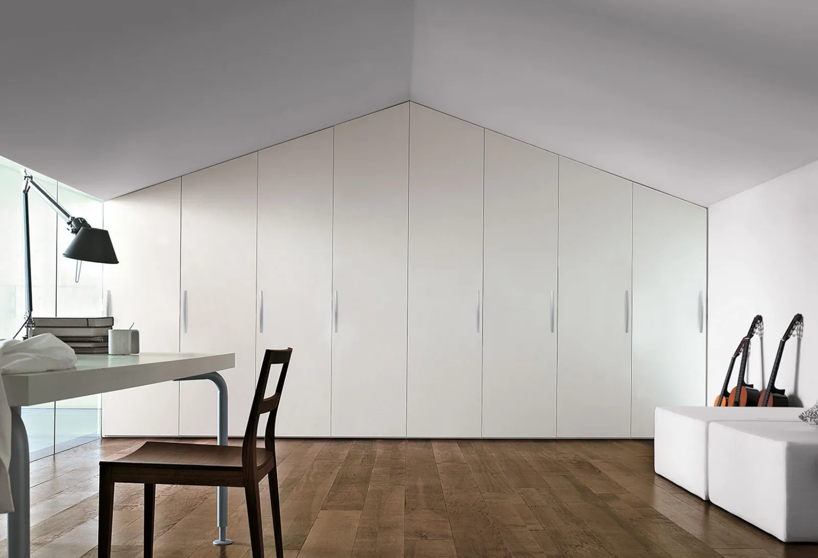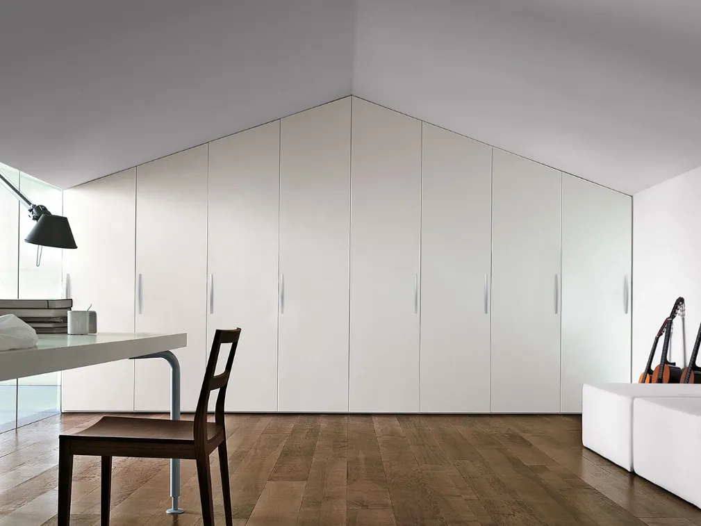 Nella nostra serie di Armadi per mansarde moderni con ante battenti troverai anche il modello presente in foto, ideale per chi cerca funzionalità e stile. Questa soluzione, tra i differenti modelli per mansarde con ante battenti di Clever, è sinonimo di robustezza, eleganza e raffinatezza duraturi negli anni. Per ultimare il progetto d'arredo in una camera da letto bella e di grande qualità, abbiamo scelto per te le più esclusive e attuali soluzioni Clever, diverse per buon gusto, grandezza, finitura e accessori. Contattaci e scopri di più su una ricca gamma di Arredamento Casa per allestire la camera da letto contando su contenitori in laccato opaco di alto contenuto estetico. Armadio Start su misura per mansarda di Clever: compila il form per informazioni e preventivi e progetta la tua casa come l'avevi sognata.