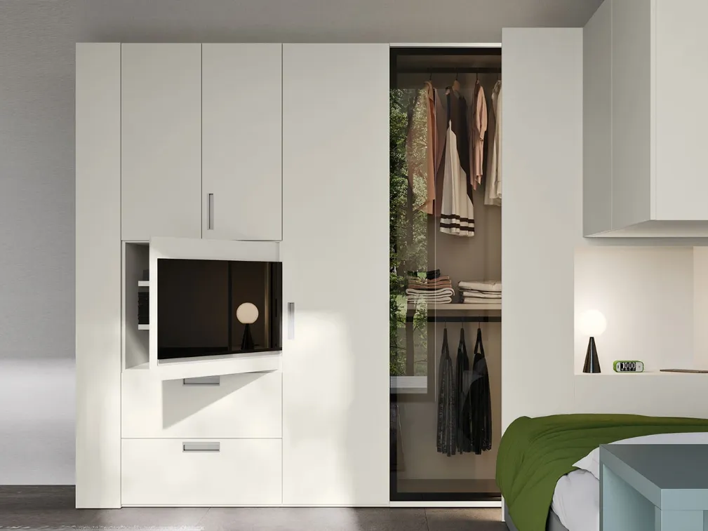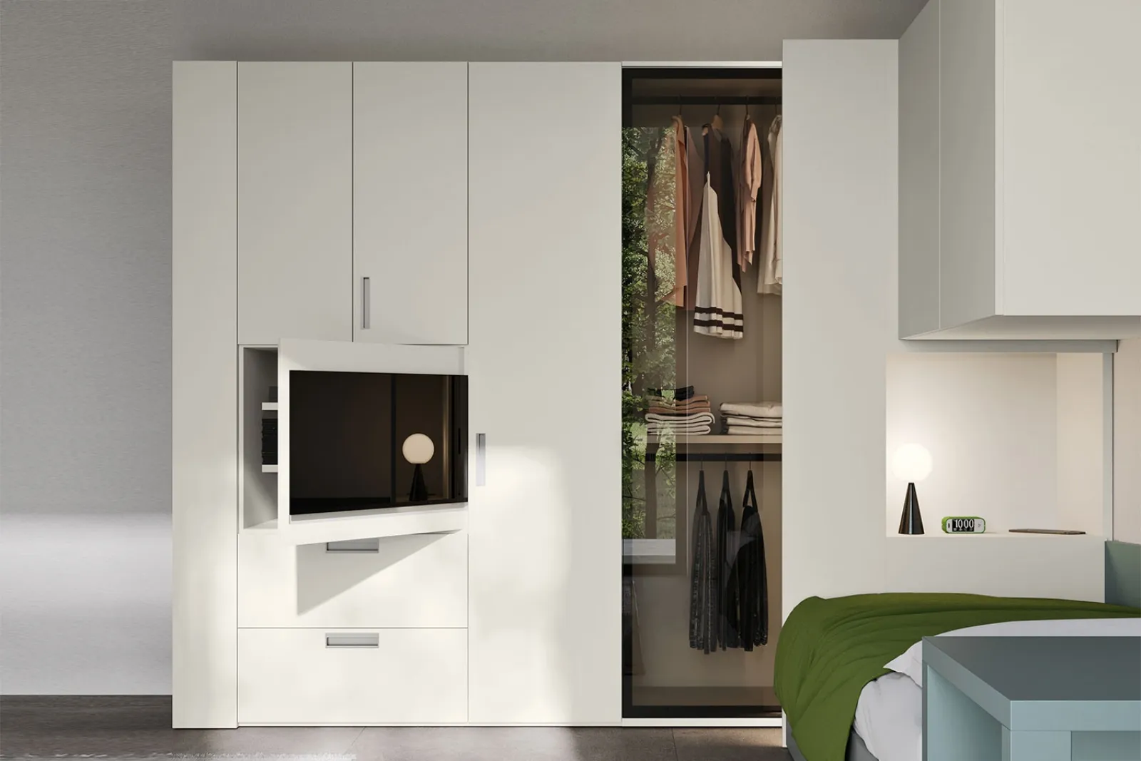 Se desideri armadiature a ponte con ante battenti, clicca e scopri l'armadio Visual TV di Clever in laccato opaco.