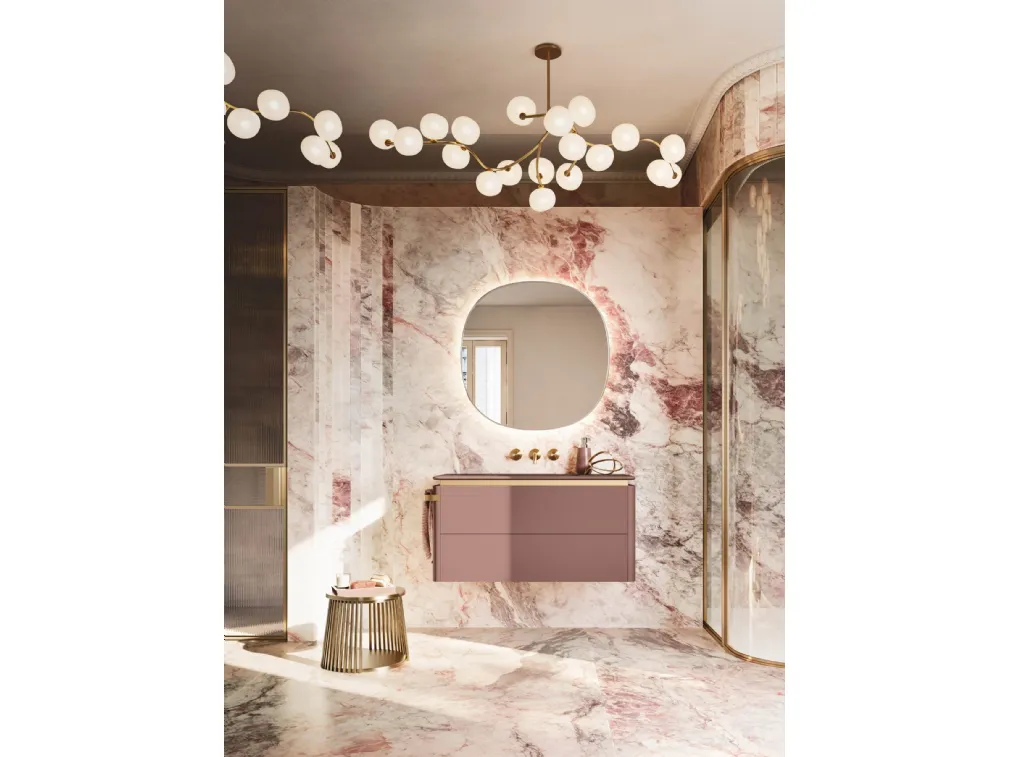 Arreda il tuo bagno design ottimamente con Almond 05, mobili bagno sospesi e accessori in laccato opaco di Arbi.