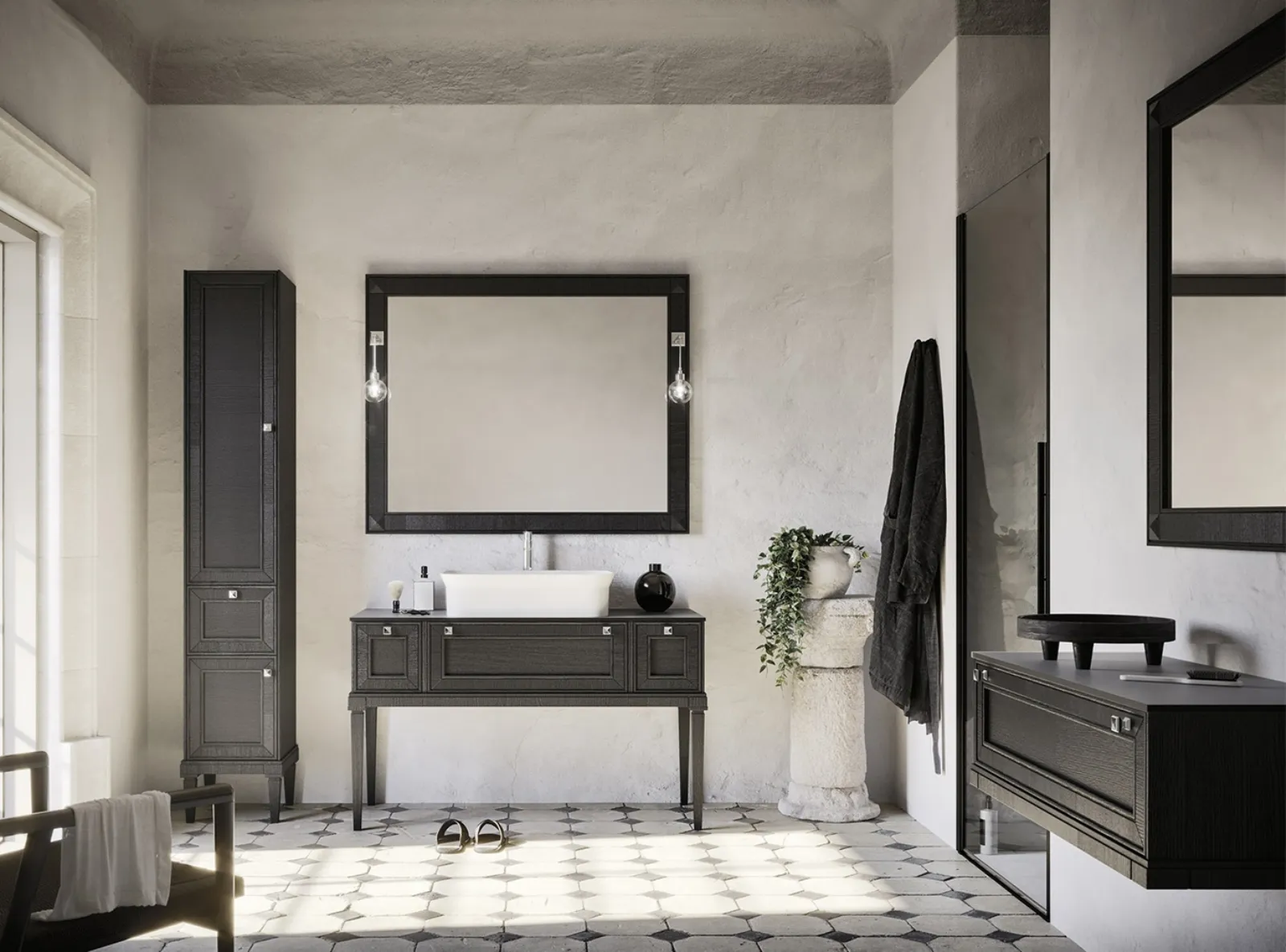 Arreda la stanza del benessere classico ottimamente con Augusto 03, mobili bagno a terra e complementi in legno di Arbi.