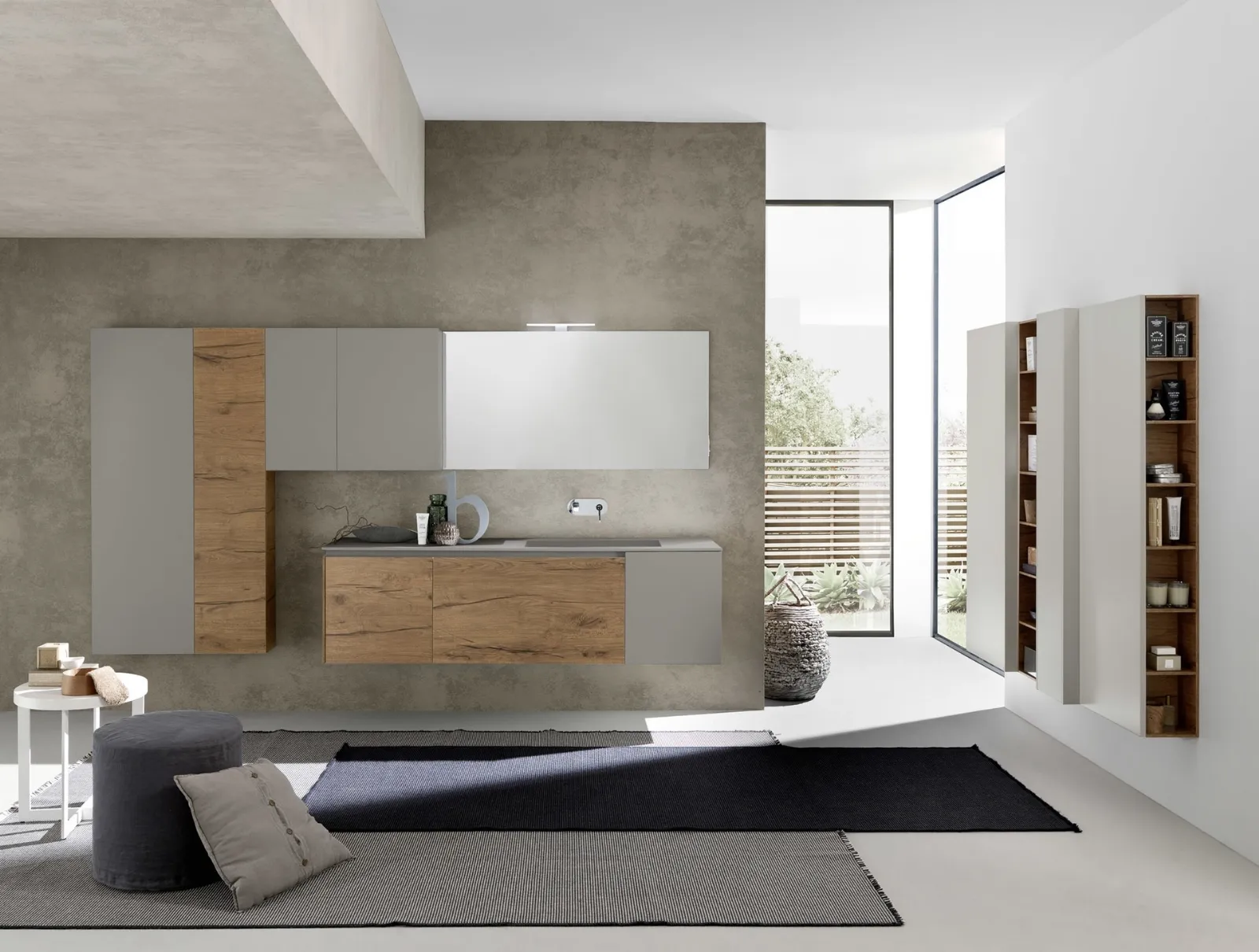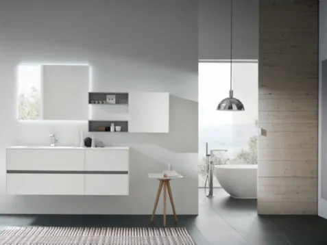 Arreda il bagno di casa moderno ottimamente con M2 System C211, mobili bagno sospesi e accessori in melaminico di Baxar.
