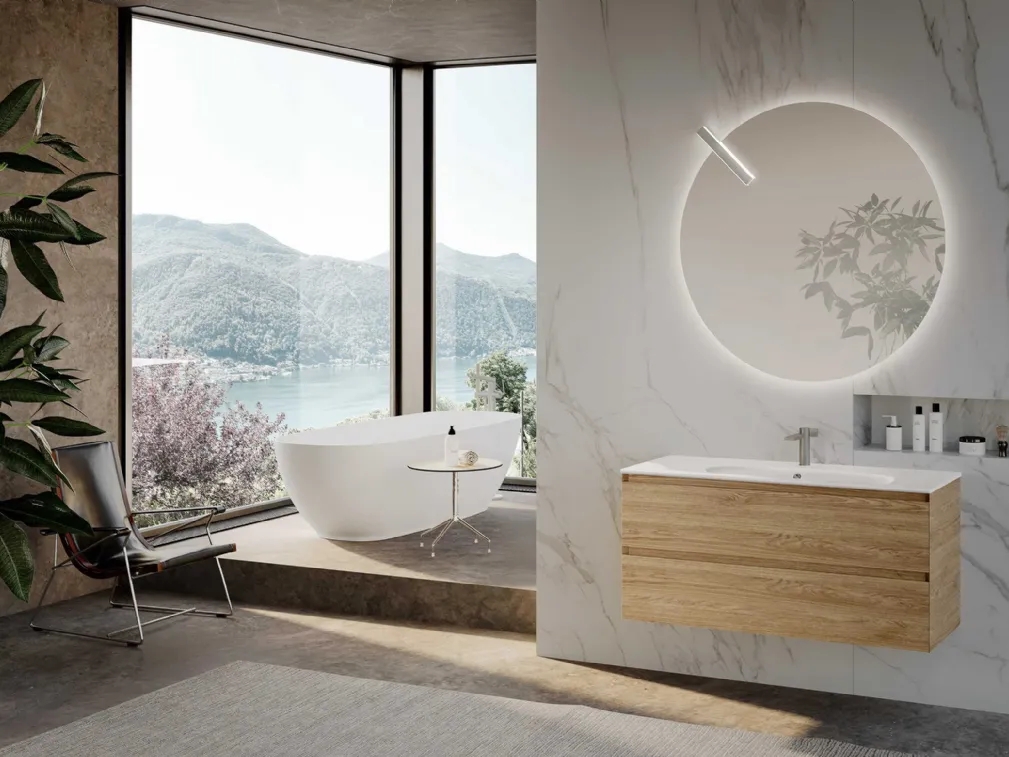 mobili bagno sospesi in legno del brand Baxar: clicca e scopri l'arredo bagno moderno Block System Picasso C25 per il tuo bagno.