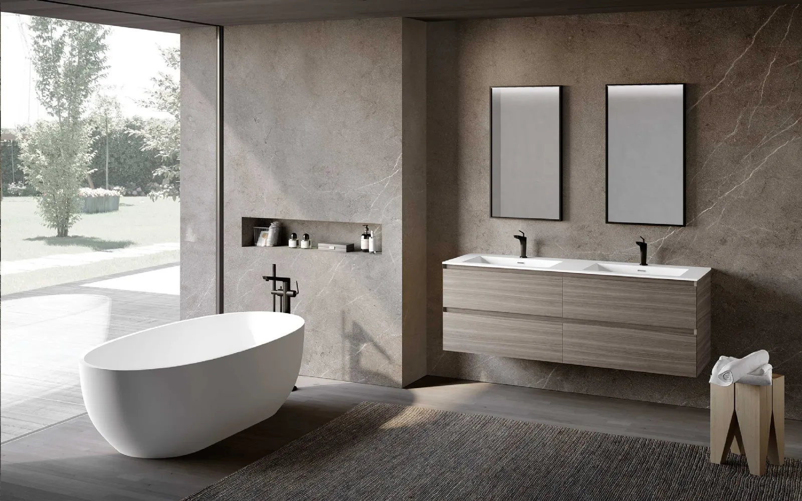 Arreda il bagno di casa moderno al meglio con Block System Syntesi C32, mobili bagno sospesi e oggetti in melaminico di Baxar.