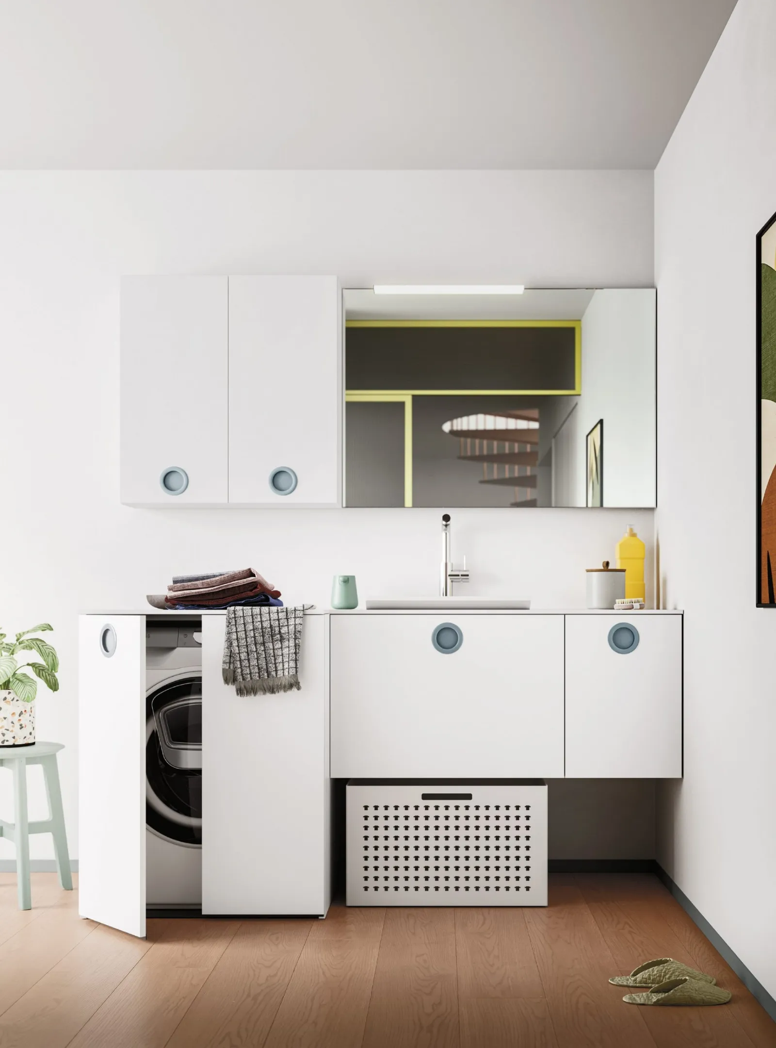 Mobili bagno per lavanderia in laccato opaco dell'azienda Arbi: clicca e scopri l'arredo bagno moderno Bolle 08 per il bagno di casa.