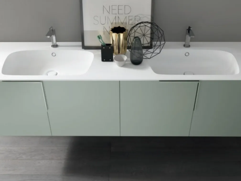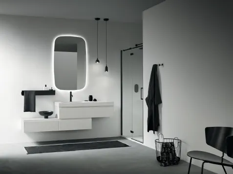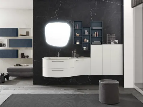 Mobili bagno sospesi in laccato opaco della firma Baxar: clicca e scopri l'arredo bagno moderno M1 System C111 per la stanza del benessere.