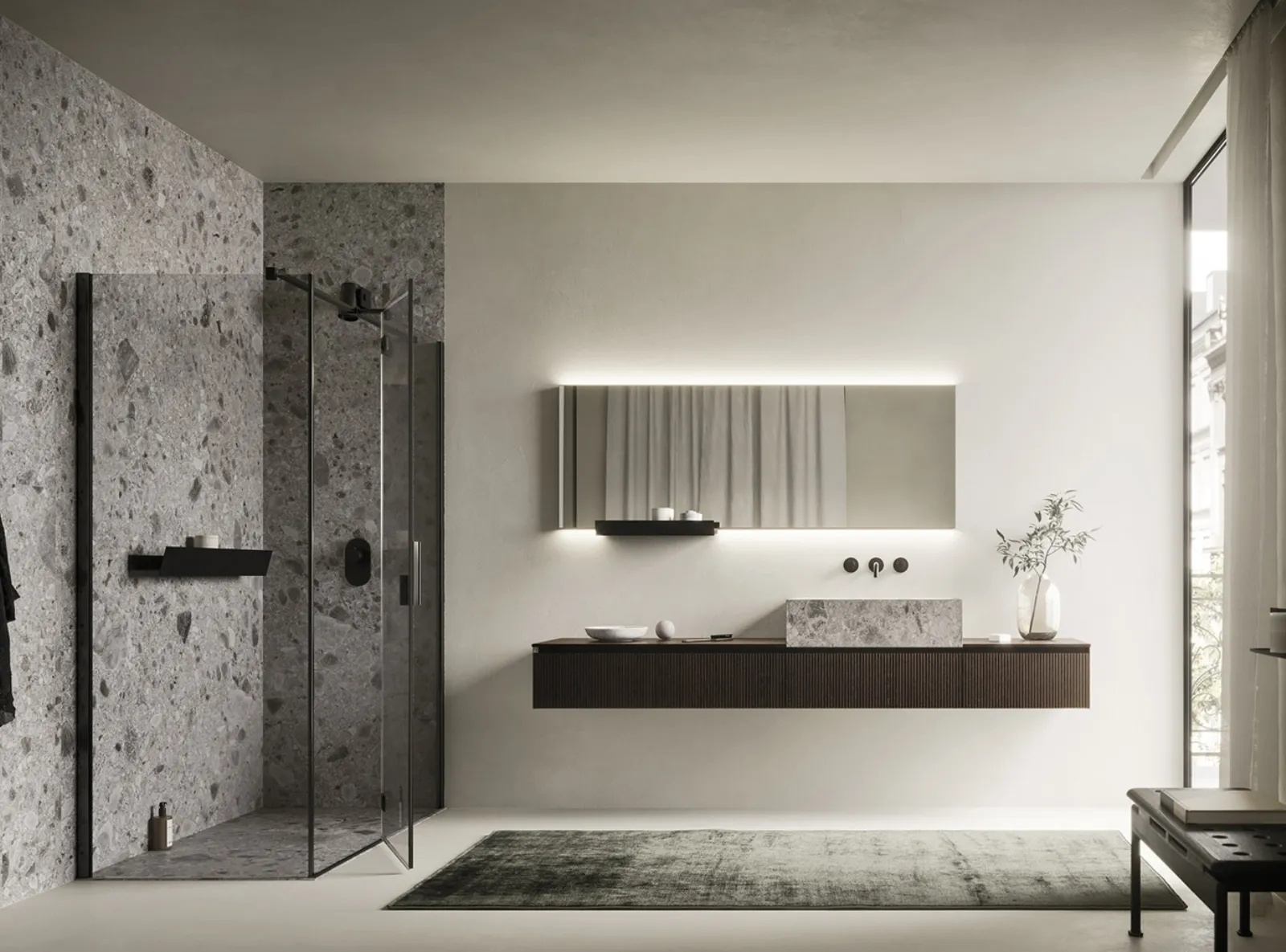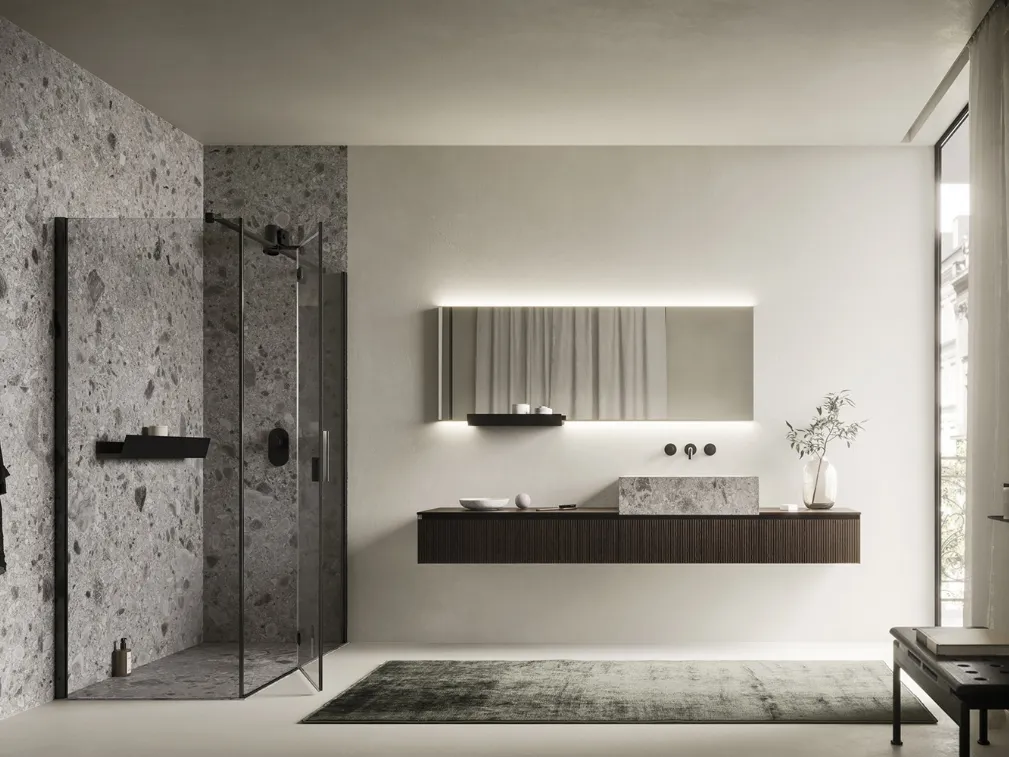 Arreda il bagno di casa moderno ottimamente con Code 09, mobili bagno sospesi e complementi in legno di Arbi.