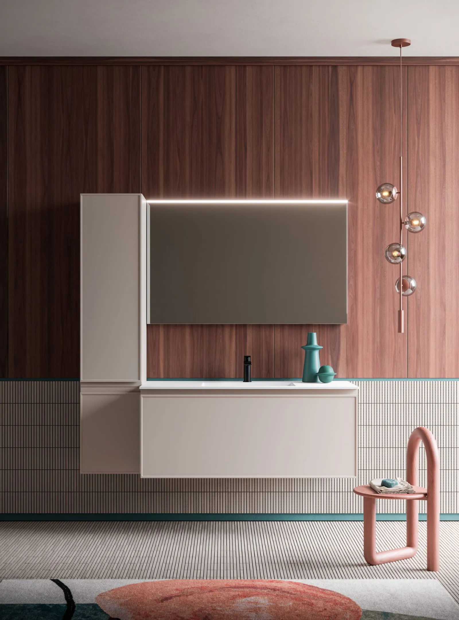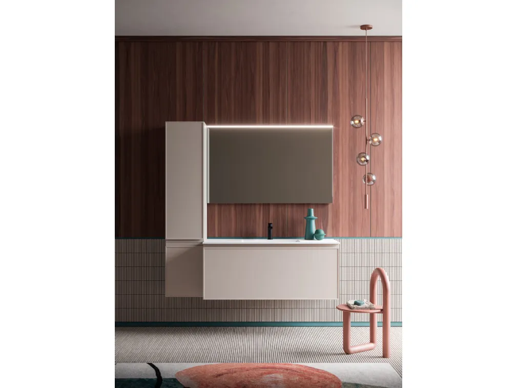 Mobili bagno sospesi Decor 04 di Arbi: scopri l'Arredo Bagno in laccato opaco moderno e arreda il bagno di casa.