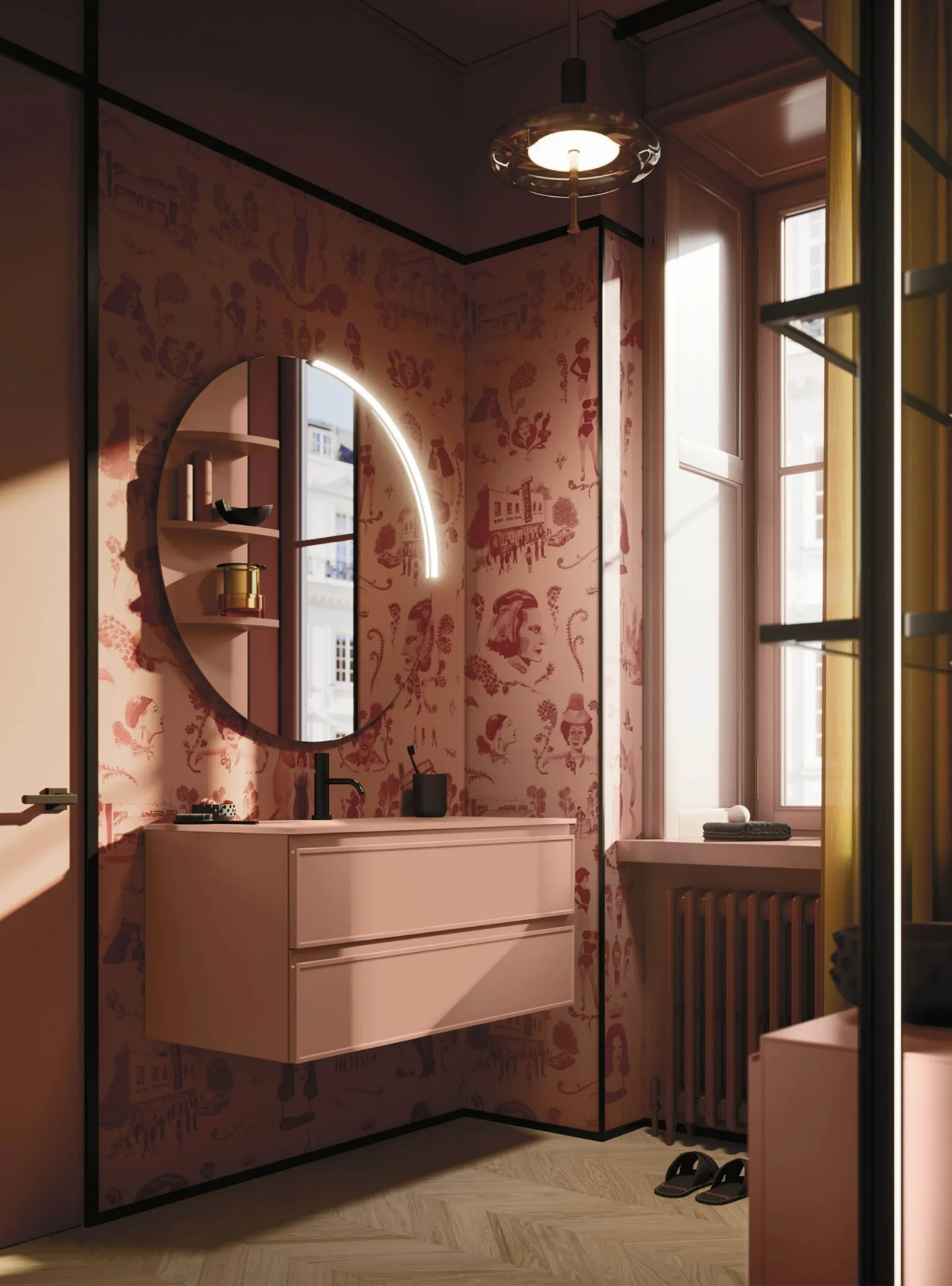 mobili bagno sospesi Decor Pink palette di Arbi: scopri l'Arredo Bagno in laccato opaco moderno e arreda il bagno di casa.