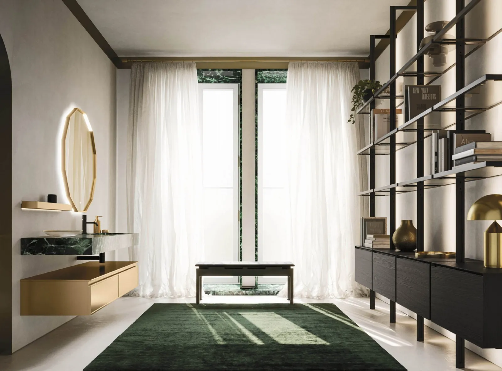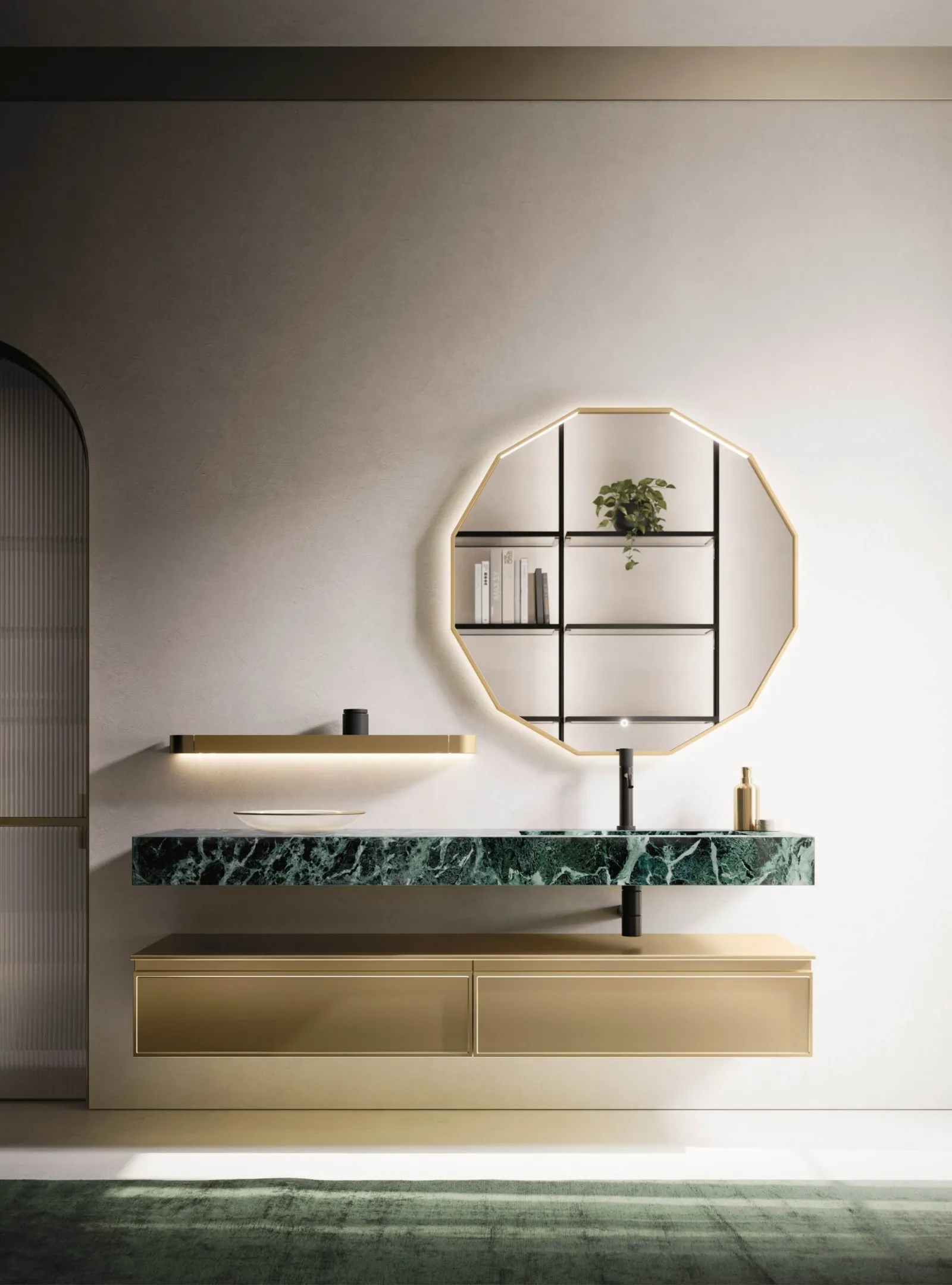 Arreda il tuo bagno design perfettamente con Decor Precious gold, mobili bagno sospesi e complementi in laccato opaco di Arbi.