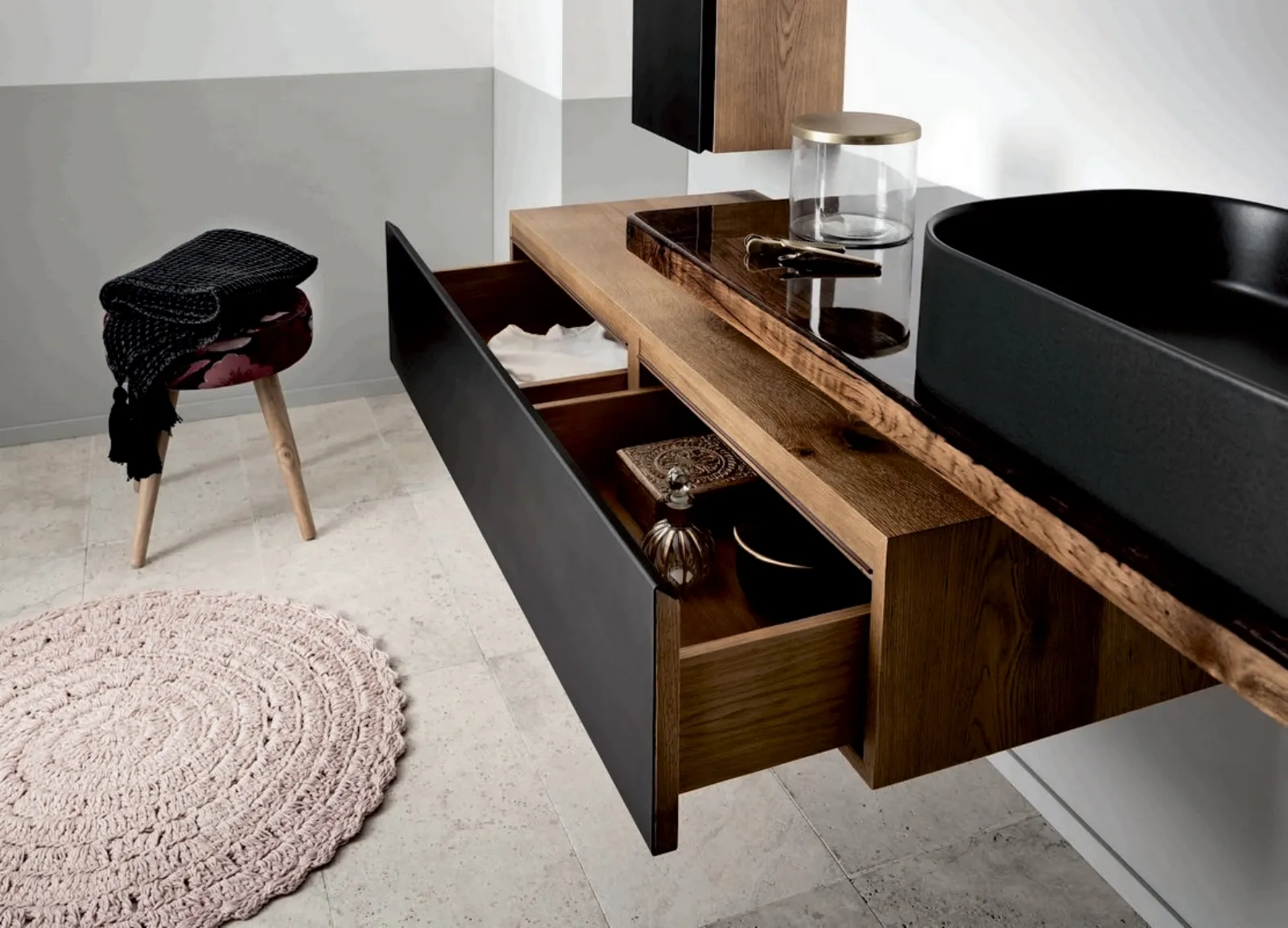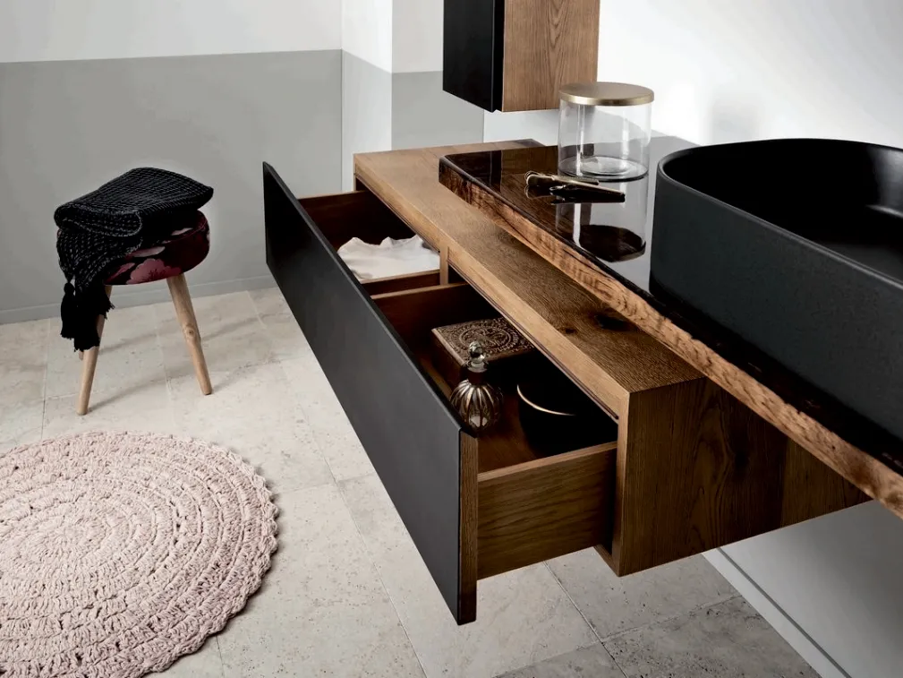 Scopri di più sull'arredo bagno moderno: mobili bagno sospesi in legno come il modello Gap 02 di Alta Corte ti attendono.
