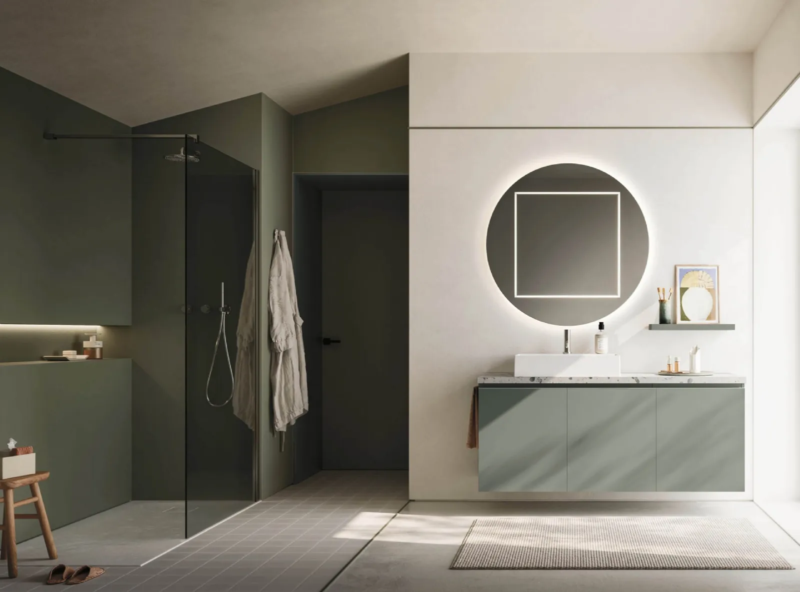 mobili bagno sospesi in melaminico dell'azienda Arbi: clicca e scopri l'arredo bagno moderno Ho-me plus 45 25 per il bagno di casa.
