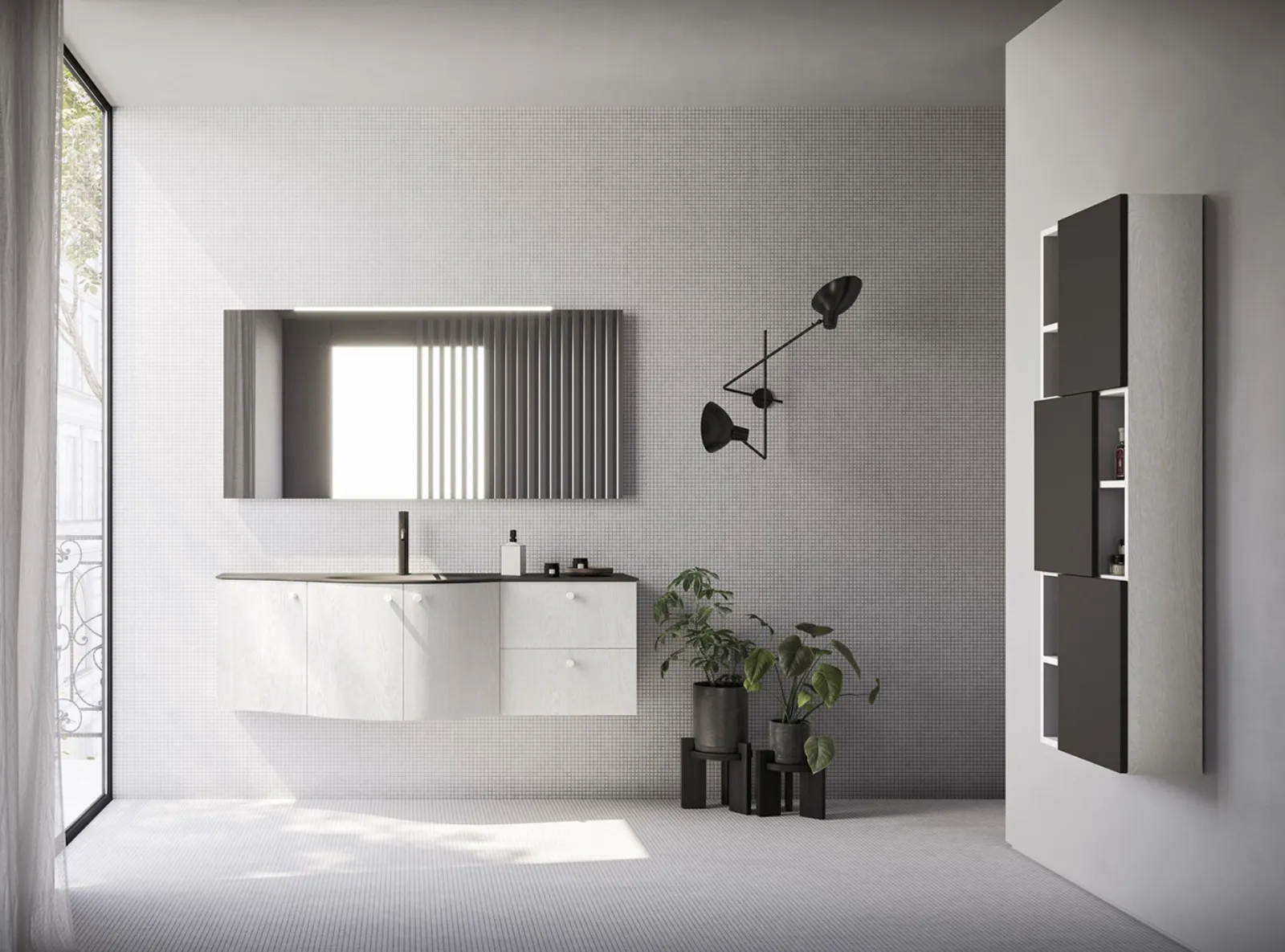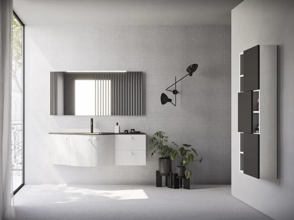 Arreda il bagno di casa moderno alla perfezione con Ho-me plus curvo 57, mobili bagno sospesi e accessori in melaminico di Arbi.