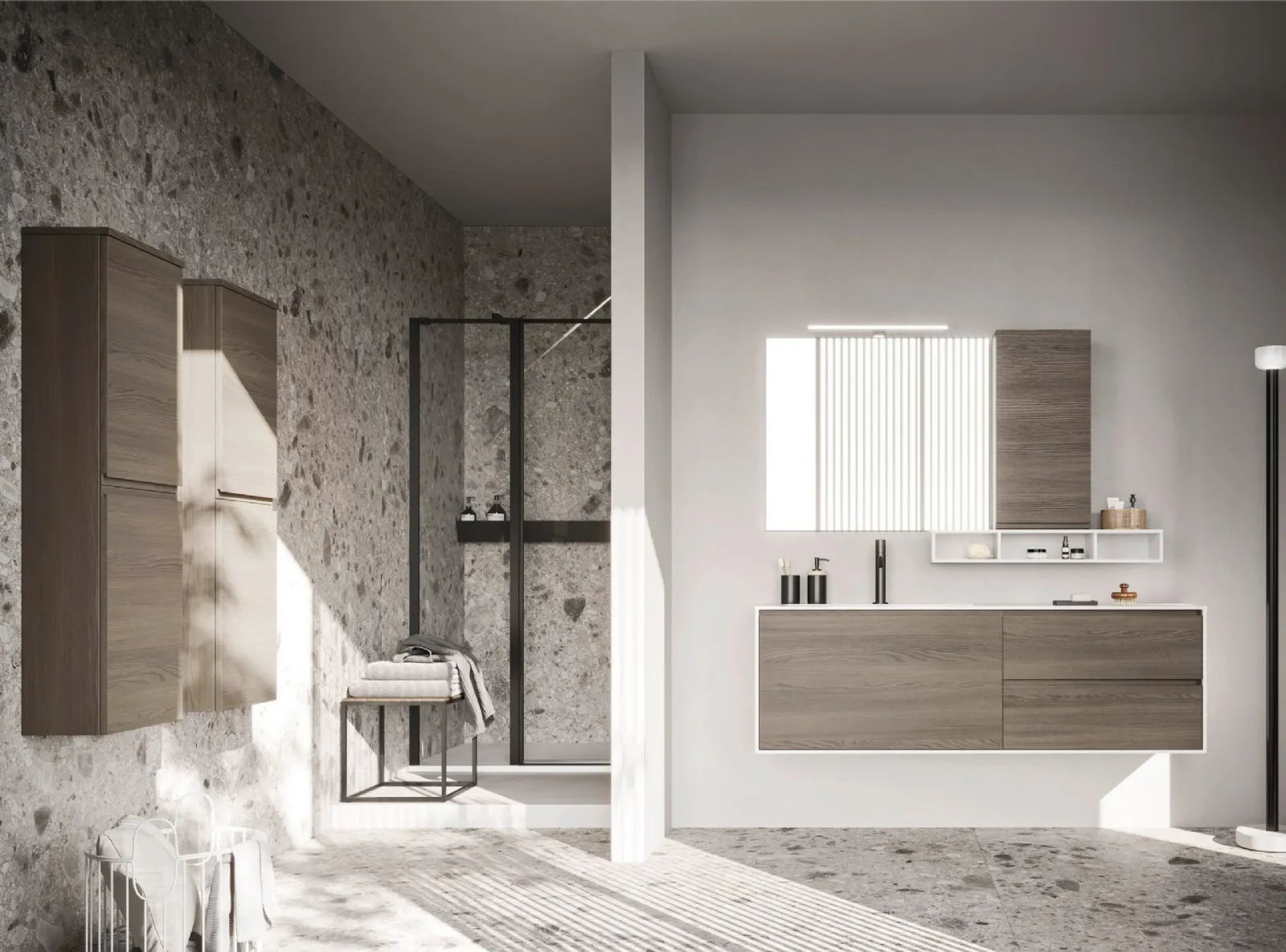 Arreda il tuo bagno moderno perfettamente con Ho-me plus J 48, mobili bagno sospesi e accessori in melaminico di Arbi.