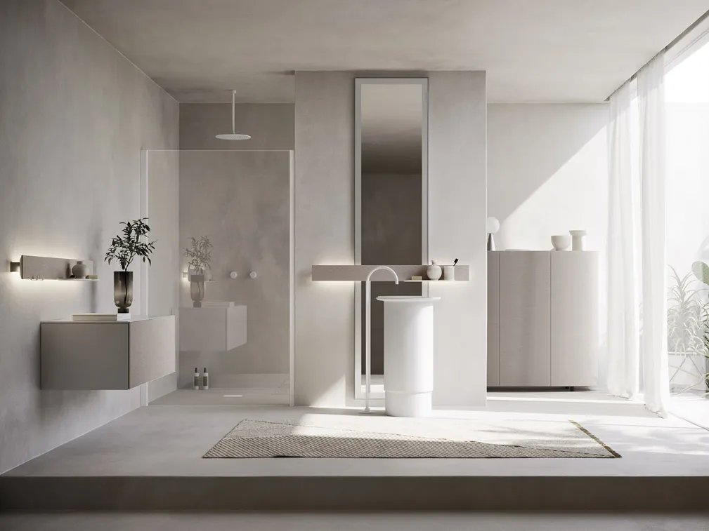 Mobili bagno sospesi Luxor 03 di Arbi: scopri l'Arredo Bagno in legno design e arreda il bagno di casa.