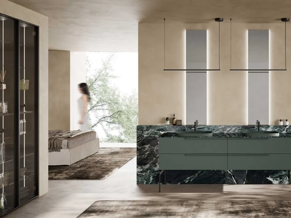 mobili bagno a terra M System 031 di Baxar: scopri l'Arredo Bagno in laccato opaco moderno e arreda la stanza del benessere.