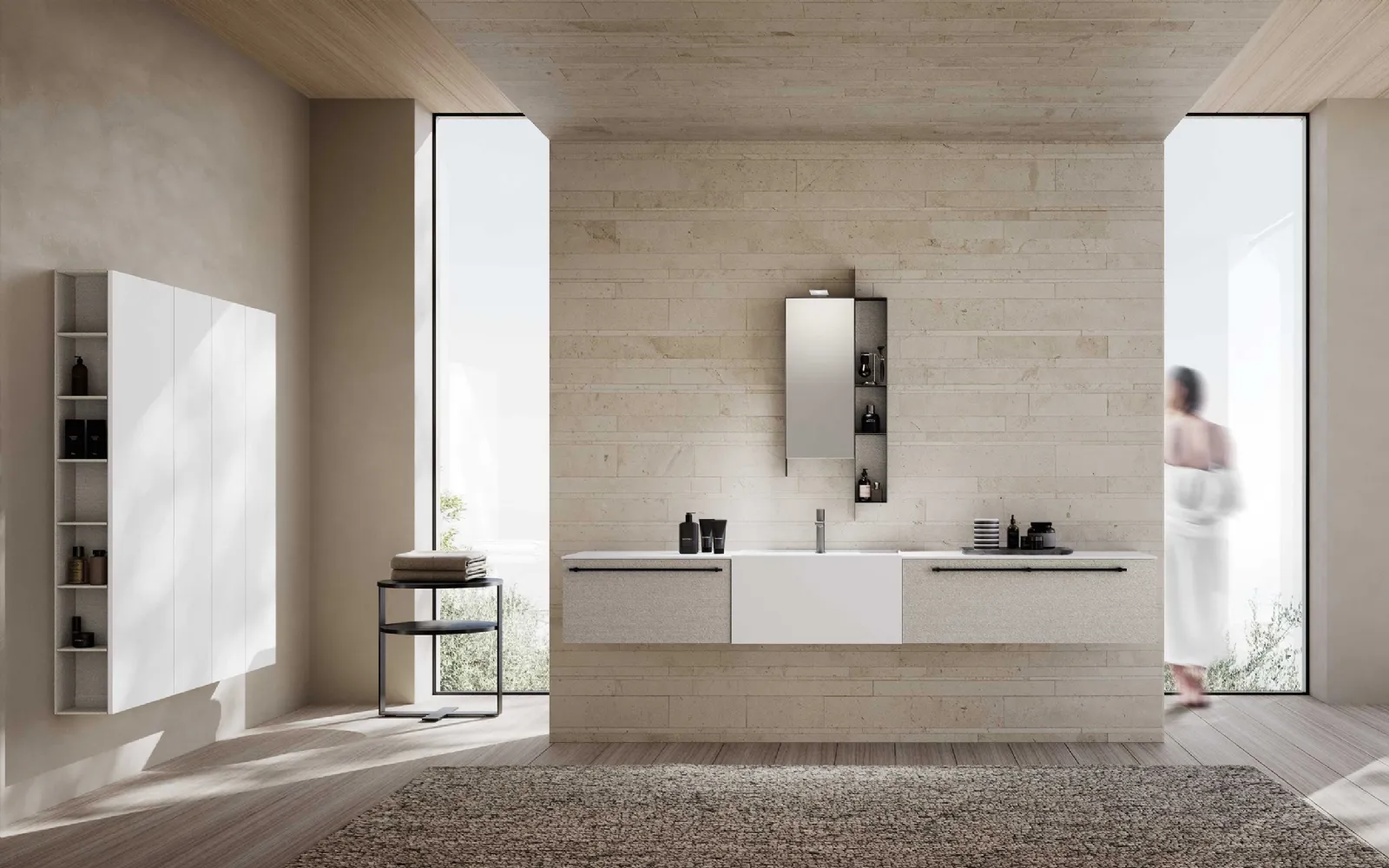 Scopri di più sull'arredo bagno moderno: mobili bagno sospesi in melaminico come il modello M System 032 di Baxar ti attendono.