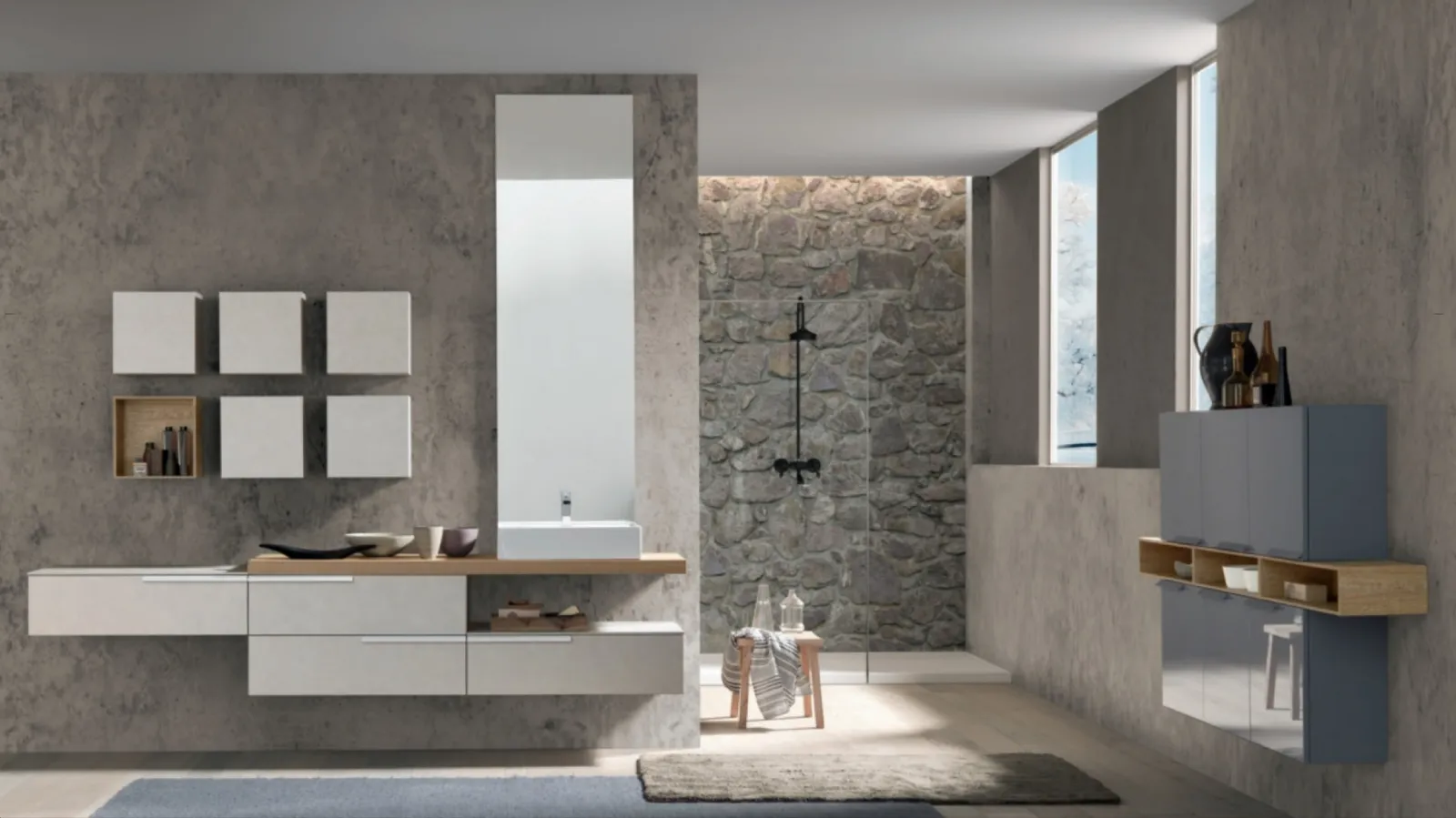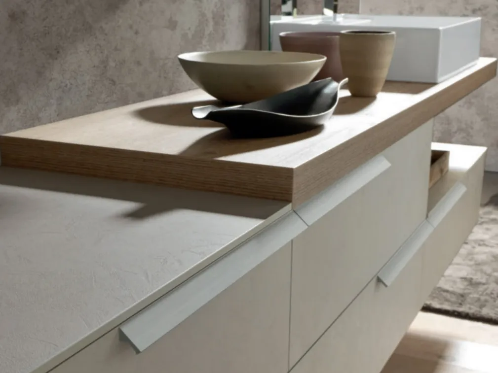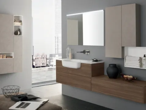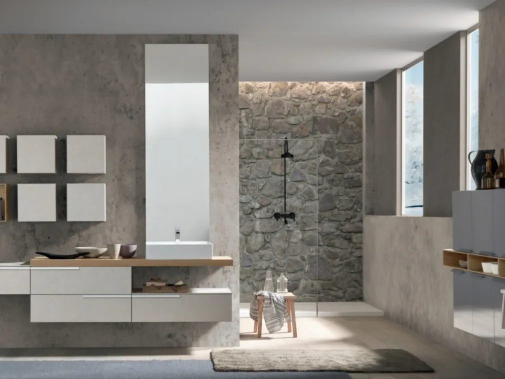 Mobili bagno sospesi in melaminico del marchio Baxar: clicca e scopri l'arredo bagno moderno M System C007 per la stanza del benessere.