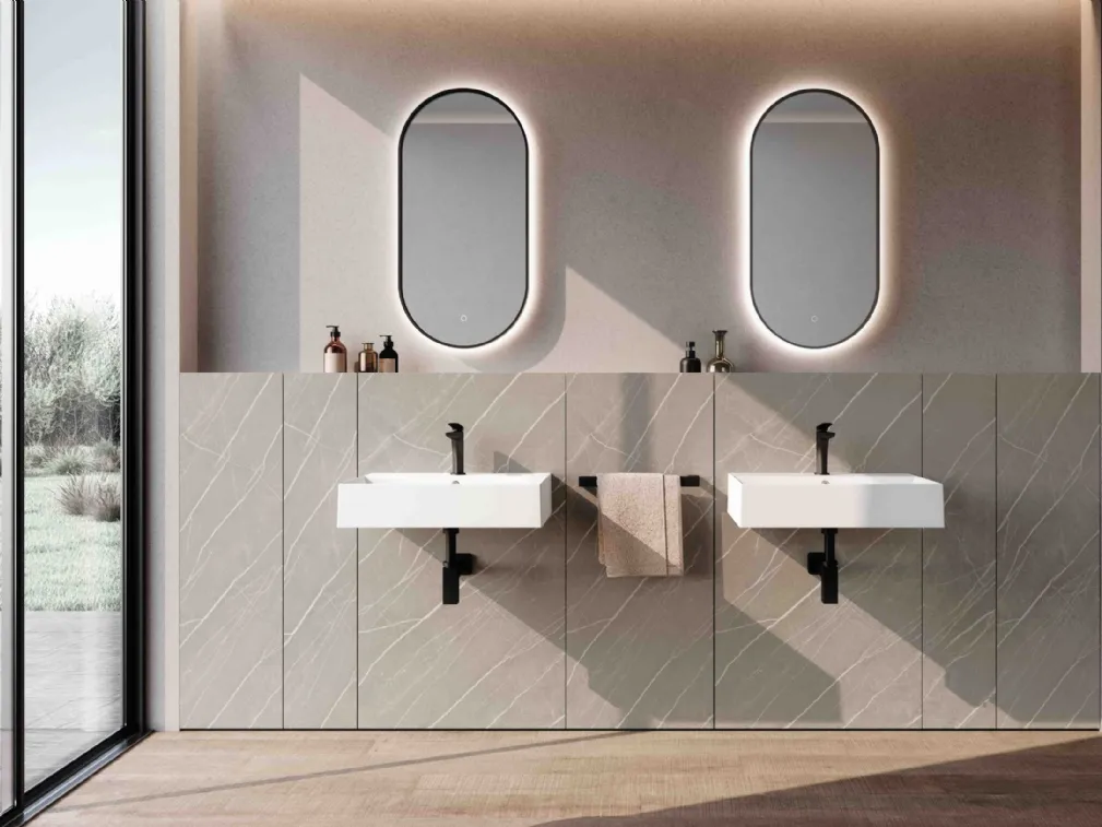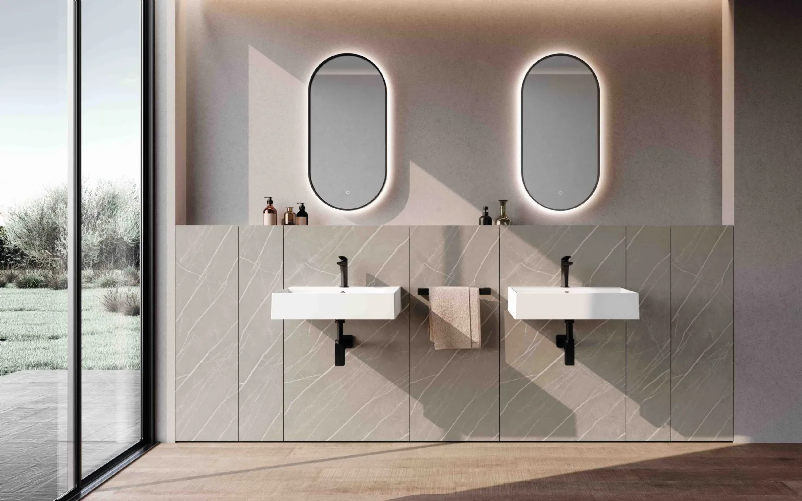 Scopri di più sull'arredo bagno moderno: mobili bagno a terra in HPL come il modello M2 System 243 di Baxar ti attendono.