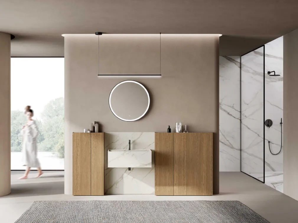 Arreda il tuo bagno design ottimamente con M3 System 302, mobili bagno a terra e complementi in legno di Baxar.