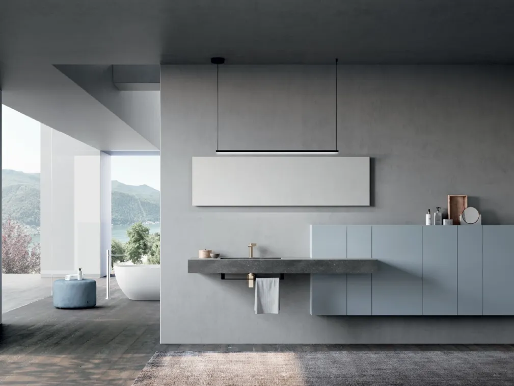 Mobili bagno sospesi in laccato opaco del brand Baxar: clicca e scopri l'arredo bagno design M3 System 303 per il bagno di casa.