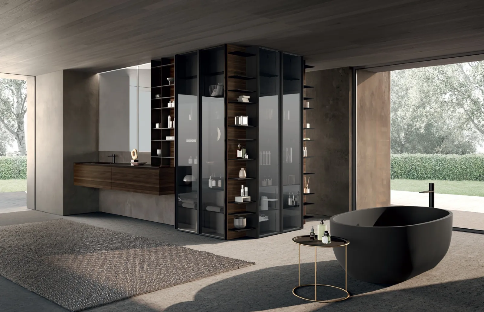 Mobili bagno sospesi in legno della marca Baxar: clicca e scopri l'arredo bagno moderno M3 System 309 per la stanza del benessere.