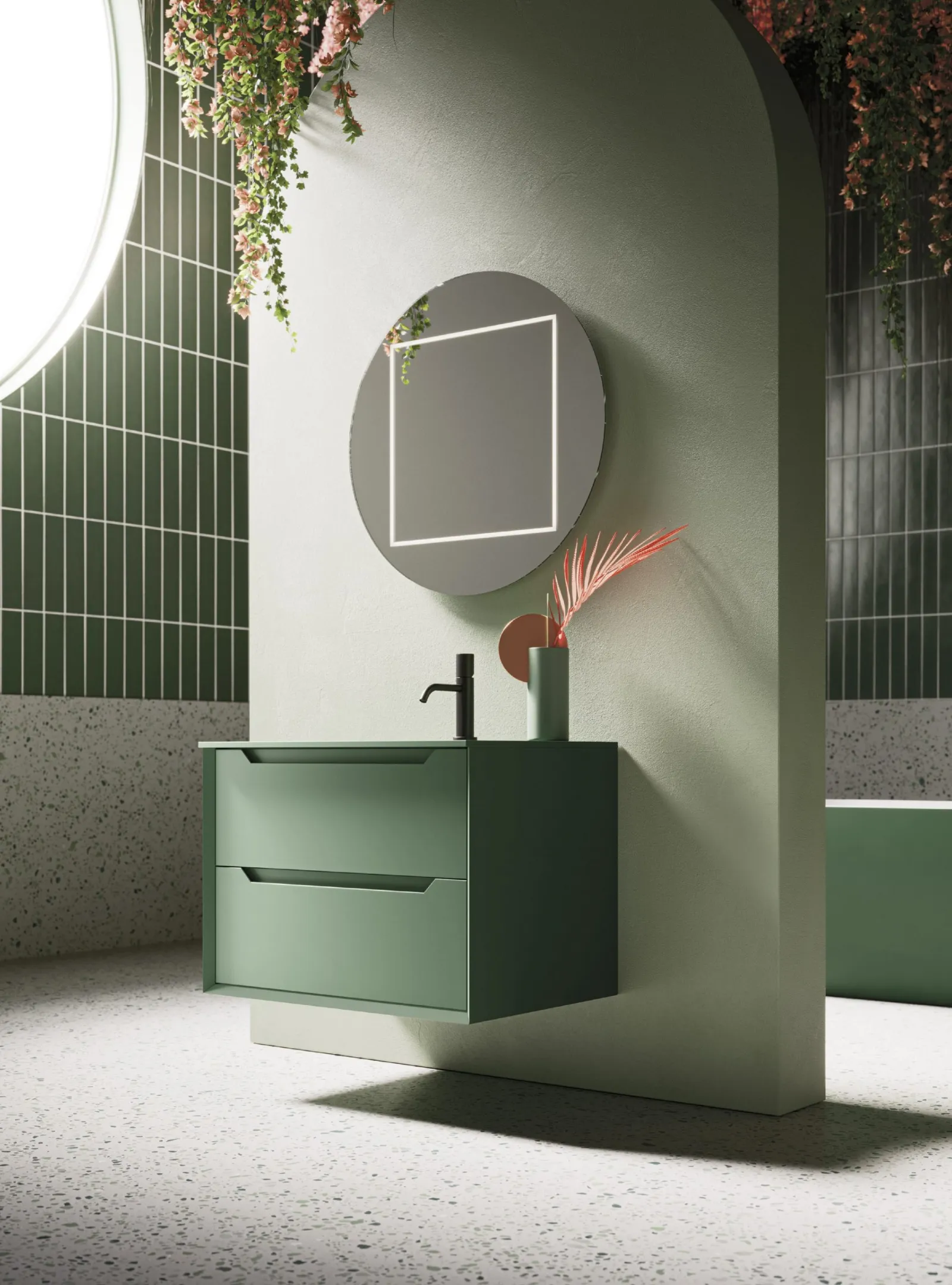 Arreda la stanza del benessere moderno perfettamente con Master 02, mobili bagno sospesi e oggetti in laccato opaco di Arbi.