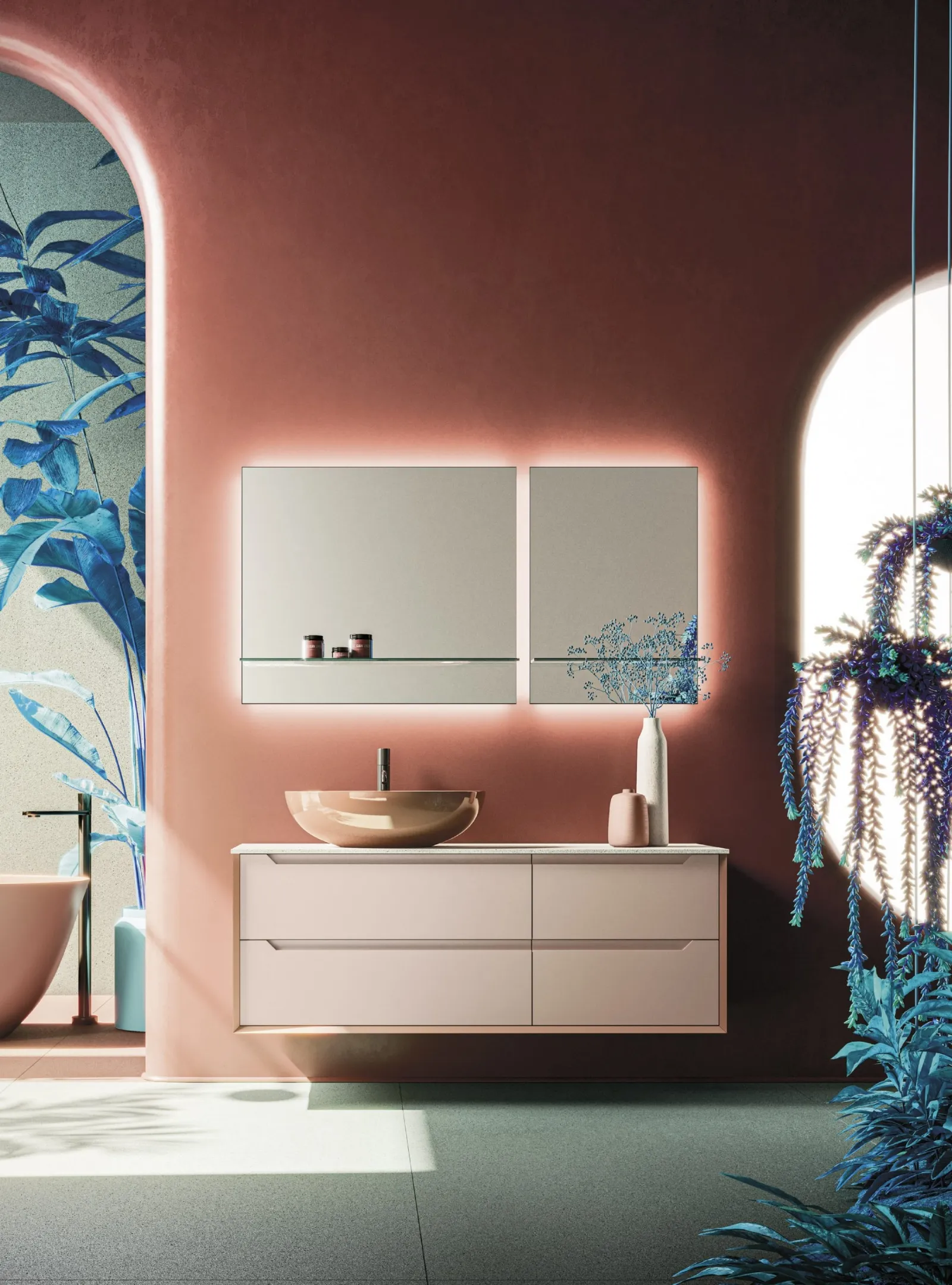 Scopri di più sull'arredo bagno moderno: mobili bagno sospesi in laccato opaco come il modello Master 09 di Arbi ti attendono.