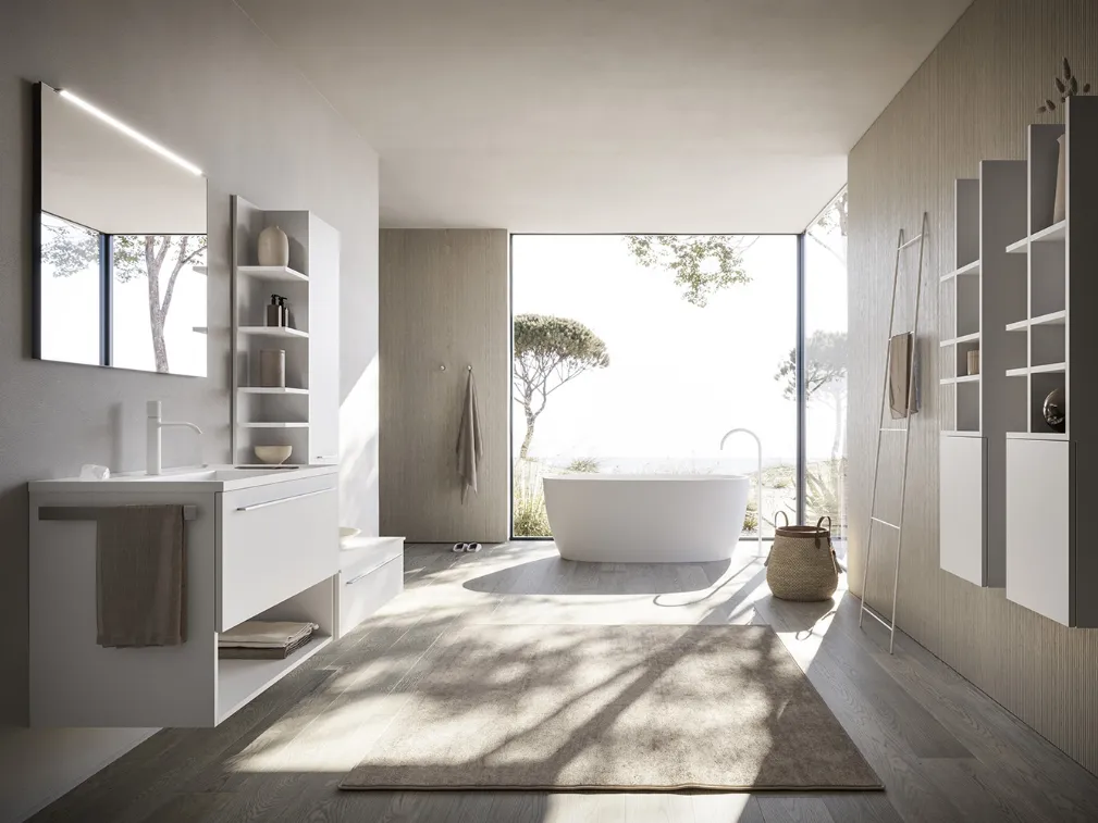 Ottieni informazioni sull'arredo bagno moderno: mobili bagno sospesi in laccato opaco come il modello Sky Liscio 18 di Arbi ti attendono.