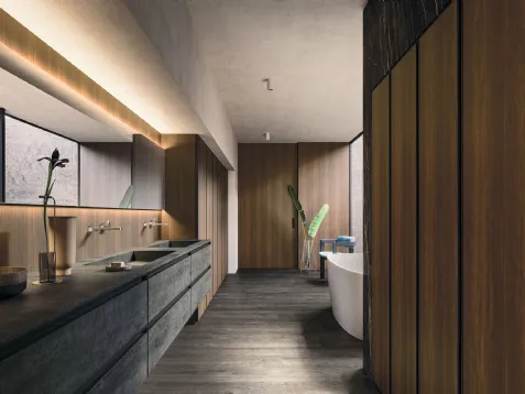 Mobili bagno sospesi Sky Pregiati 07 di Arbi: scopri l'Arredo Bagno in legno moderno e arreda la stanza del benessere.