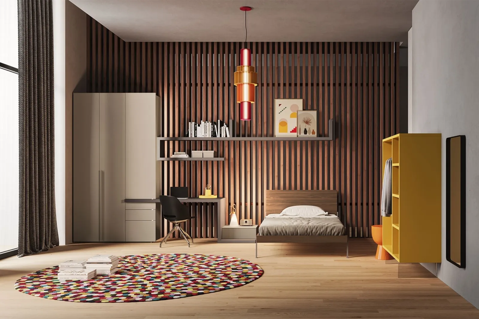Presentiamo in negozio diverse Camerette componibili moderne per ragazzi del marchio, ideali per accompagnarli durante il loro sviluppo. I nostri bambini trascorrono molte ore delle loro giornate nelle loro camere da letto: rendile adatte per studiare, divertirsi e dormire quotidianamente. Con la Cameretta minimal componibile Start T10 di Clever in melaminico ti assicurerai un perfetto connubio di ergonomia e sicurezza, ideale per la stanza dei tuoi figli. Nel nostro showroom ti guidiamo dalla scelta dell'arredamento per la camera alla progettazione del luogo nel quale i tuoi bambini cresceranno, giocando e sognando. Le Camerette dei nostri figli sono l'ambiente in cui cresceranno giocando e sognando, quindi è essenziale che lo spazio sia funzionale.