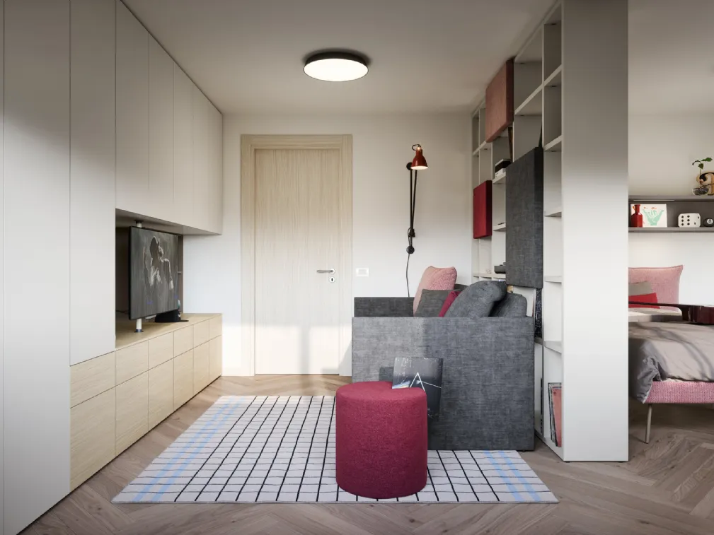Arreda stanzette moderne con le Camerette componibili Nidi! Il modello Letto a Divano in melaminico è per ragazzi.