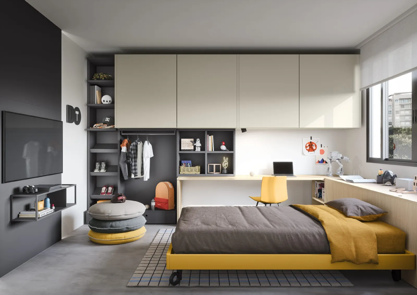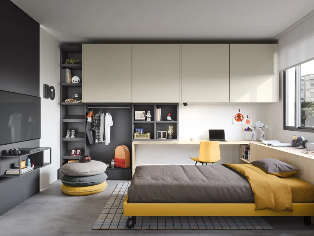 Con questa cameretta Kids space 21 Nidi, tra le soluzioni componibili, potrai progettare stanze moderne per ragazzi.