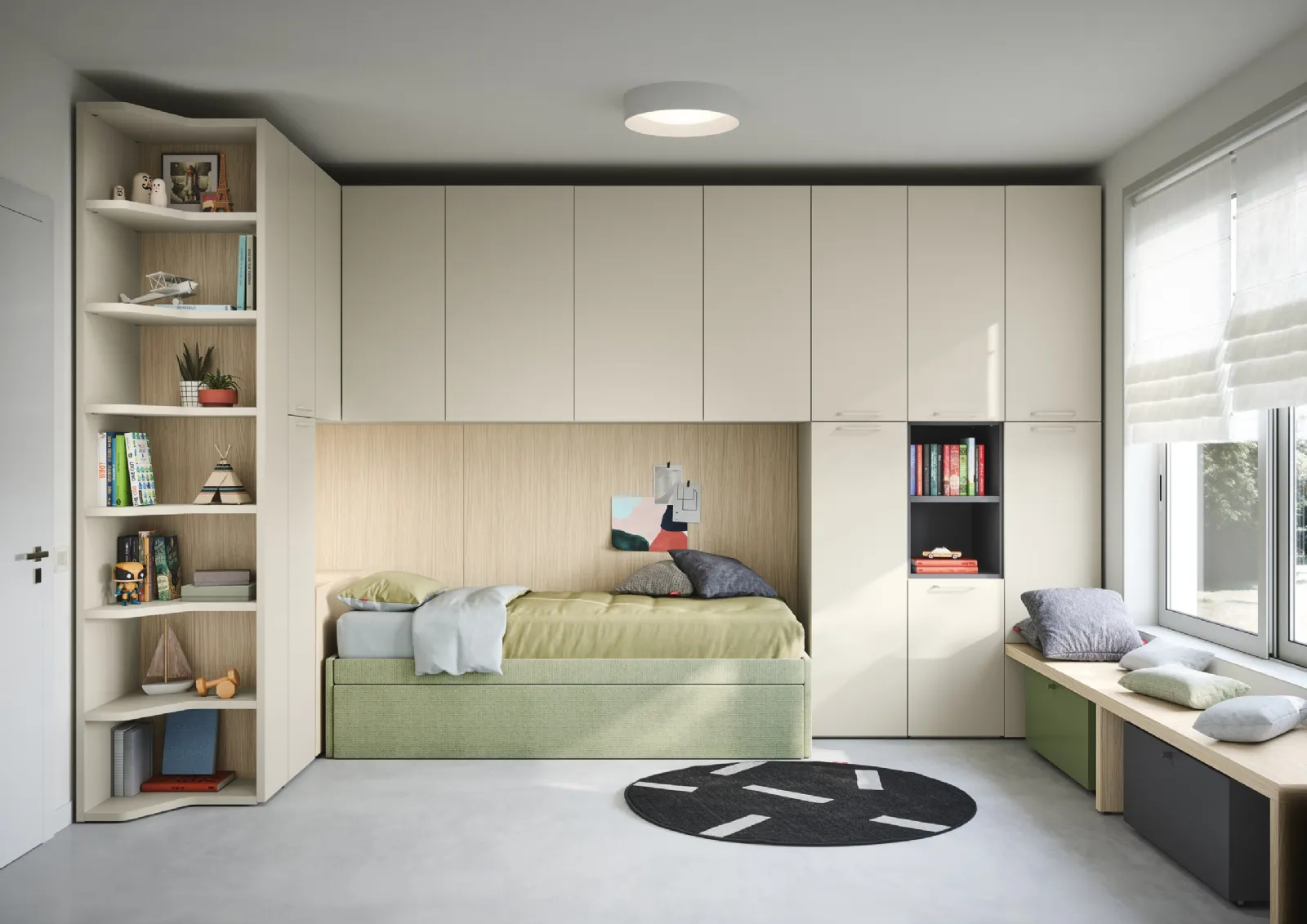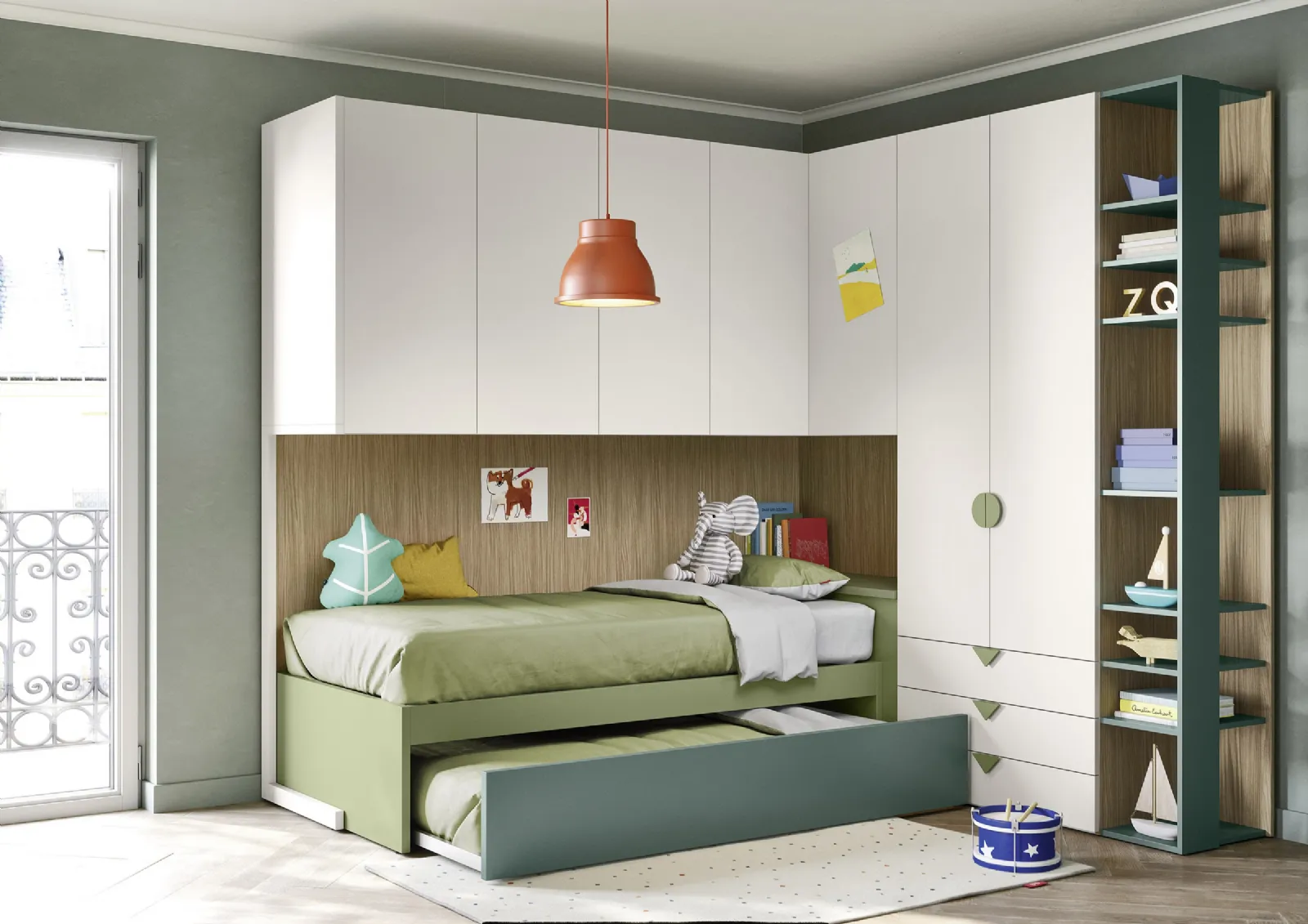 Nidi offre una ricca gamma di accessori da comporre su misura: troverai letto, guardaroba, scrivania, sedie e librerie. Nell'arredamento della stanza dei giovani affidati a noi: in negozio proponiamo tutte le più belle composizioni arredative moderne per la loro camera. Se cerchi idee creative per arredare ottimamente la stanza dei tuoi bambini, ti proponiamo la Cameretta a Ponte con Letti Estraibili di Nidi con finitura in melaminico. Porta valore estetico e colori vivaci nella stanza dedicata ai bambini con questa proposta, una tra le Camerette a ponte per ragazzi di Nidi.