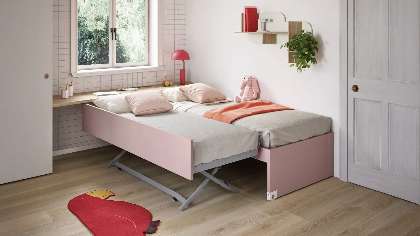 Clicca e scopri di più sulla cameretta per bambine Salvaspazio Letti Estraibili! Le Camerette salvaspazio Nidi ti aspettano.