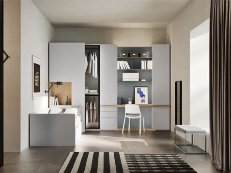Con questa cameretta Start T04 Clever, tra le soluzioni componibili, potrai progettare stanze moderne per ragazzi.