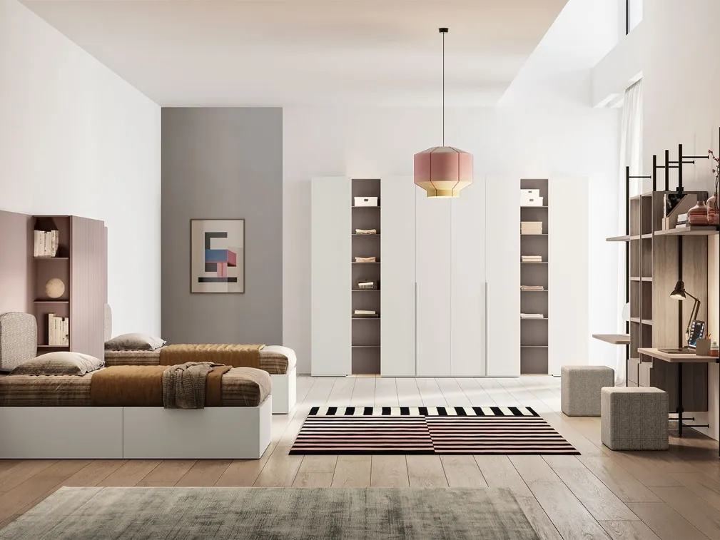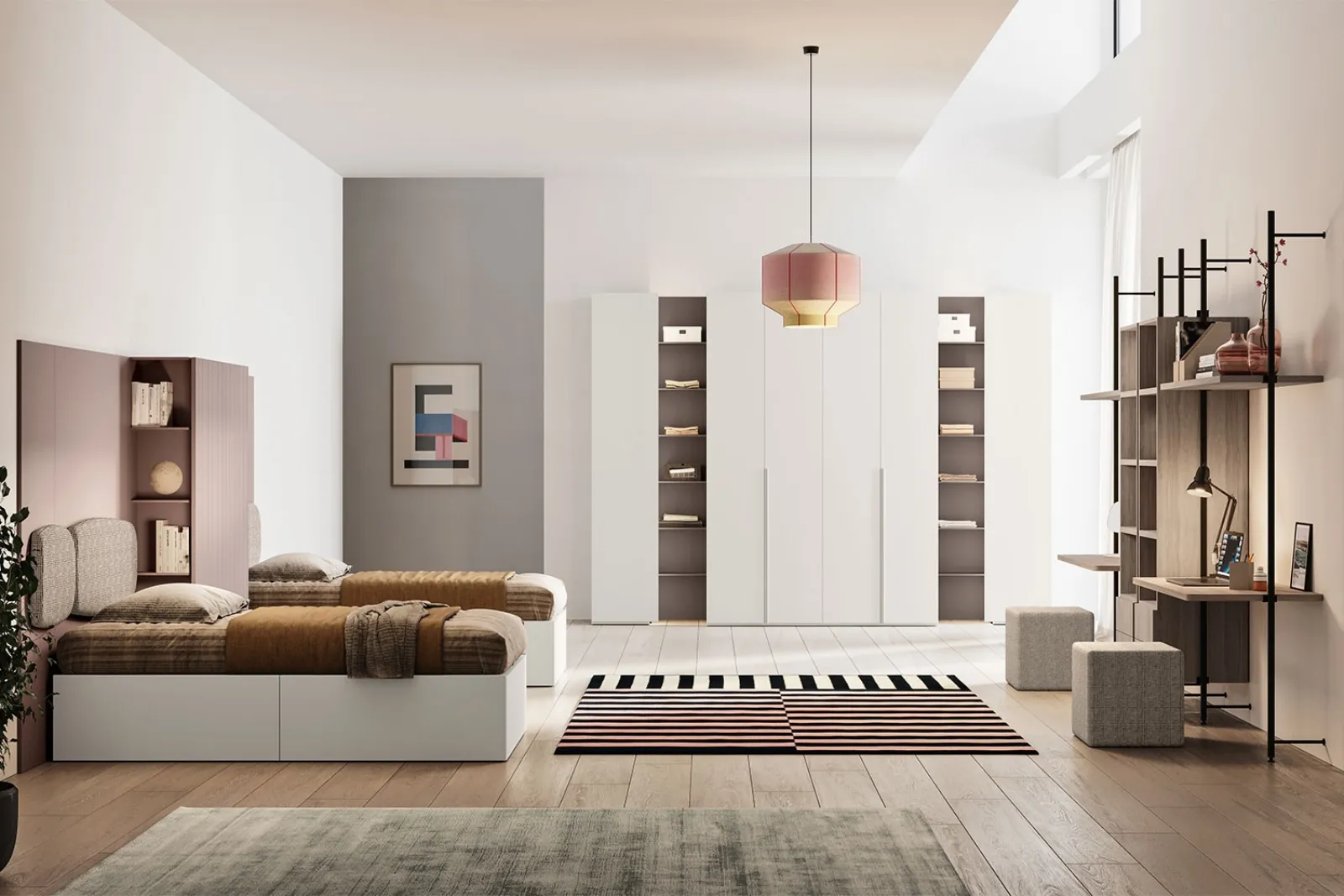 Camerette componibili per ragazzi: scopri il modello in laccato opaco Start T07 di Clever per stanzette moderne.